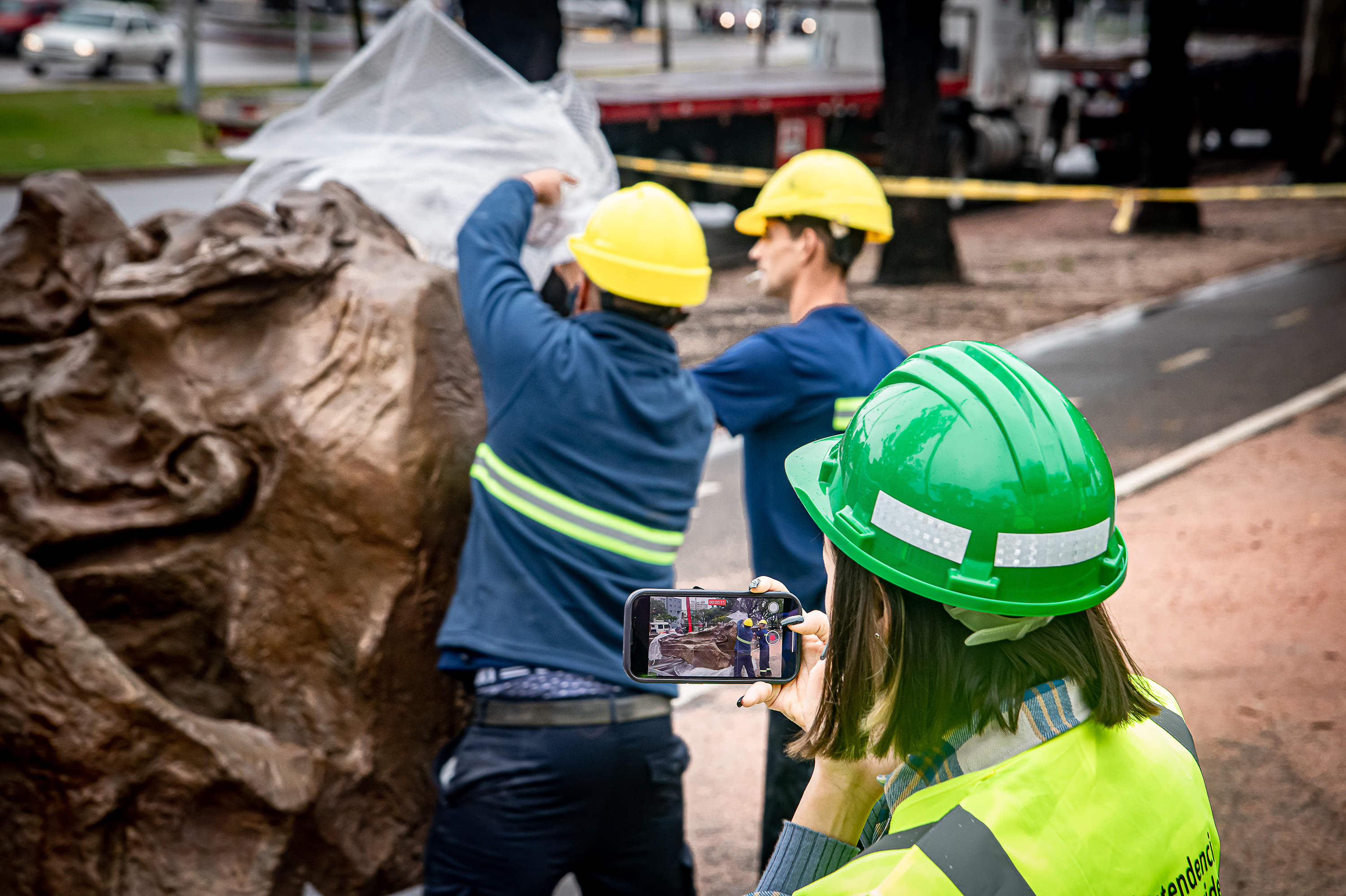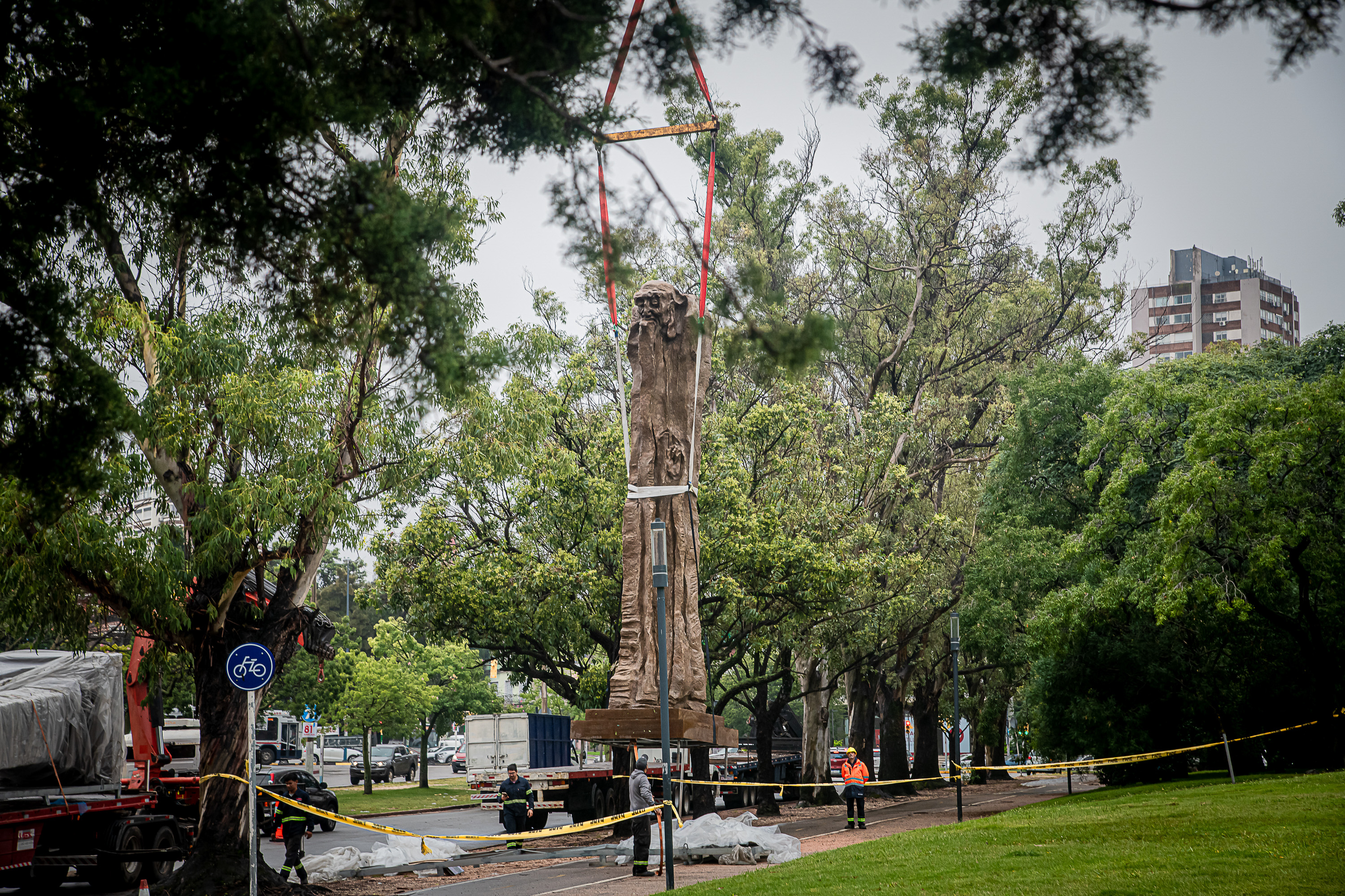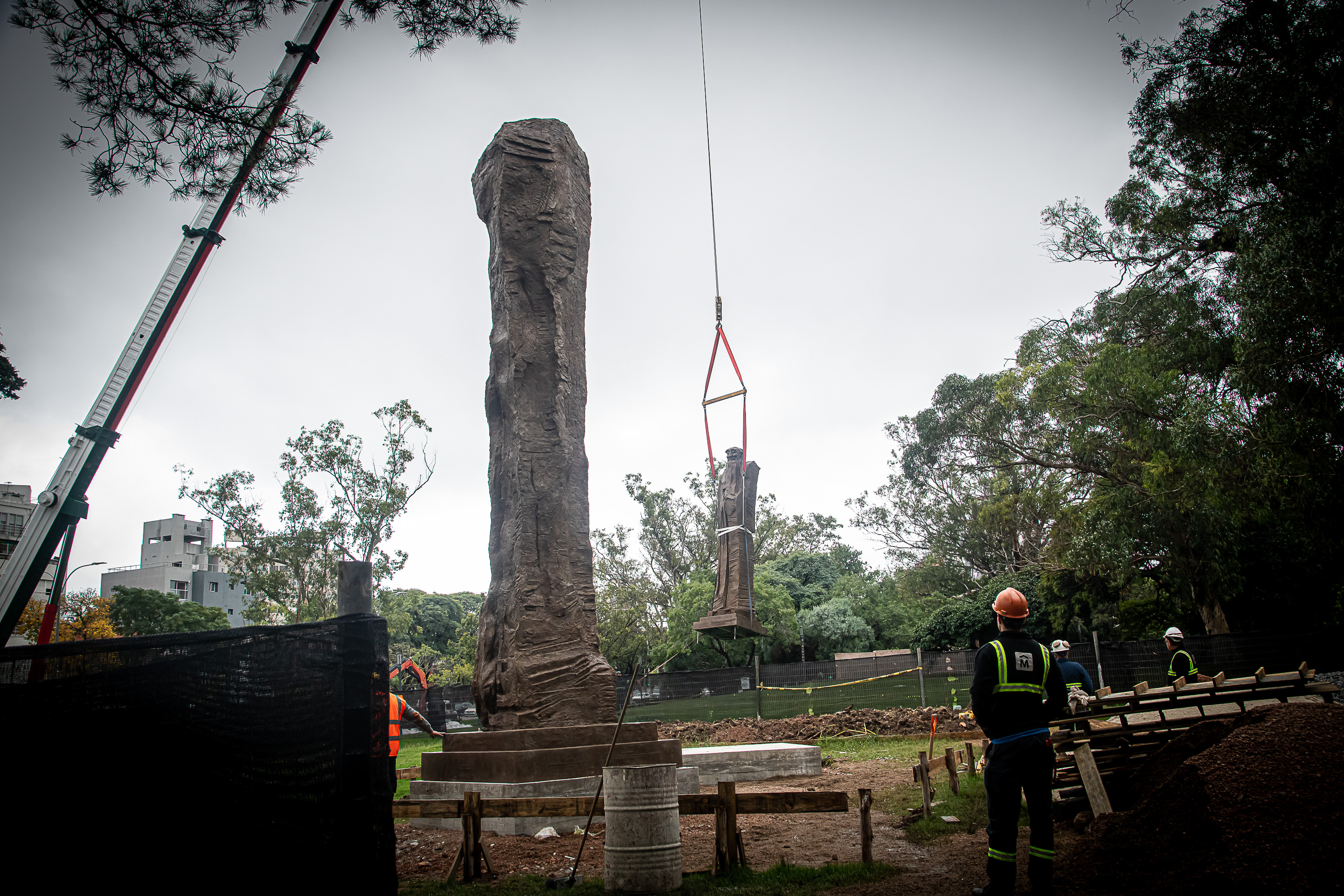 Instalación de las estatuas Confucio y Lao Tse en parque Batlle