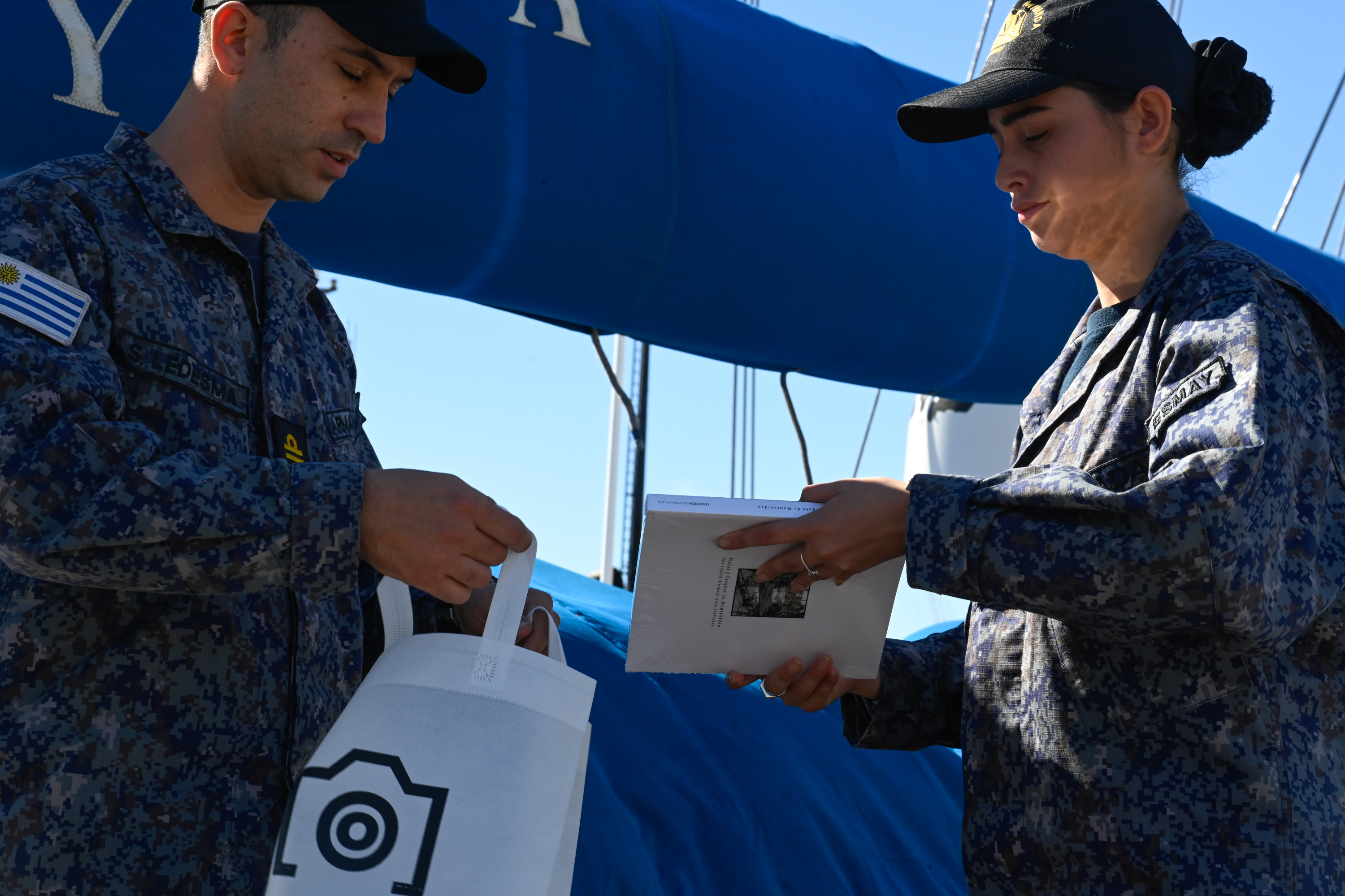 Entrega de libros para obsequiar a los piases que visita el Capitán Miranda