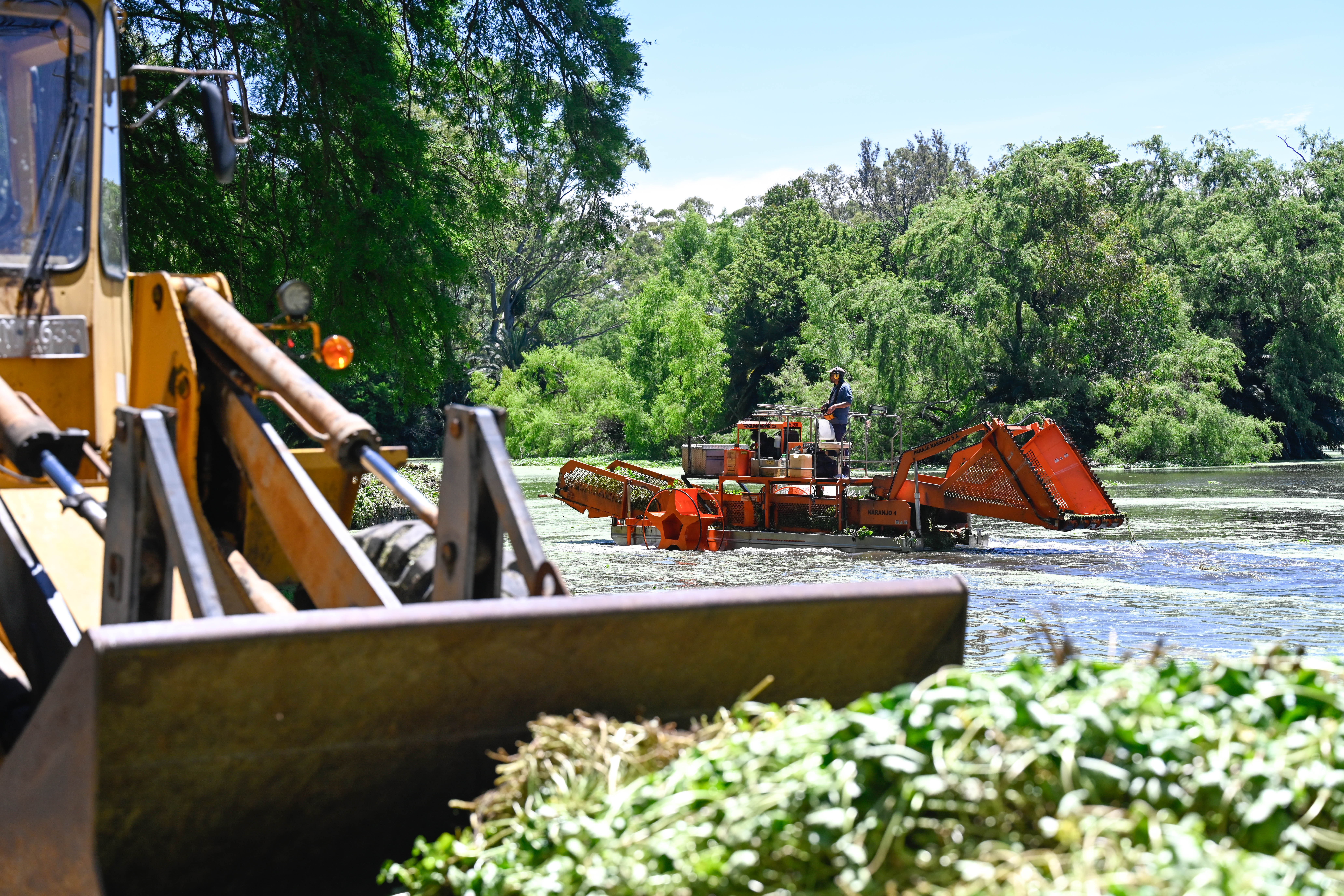 Tareas de limpieza en el lago del parque Rivera.