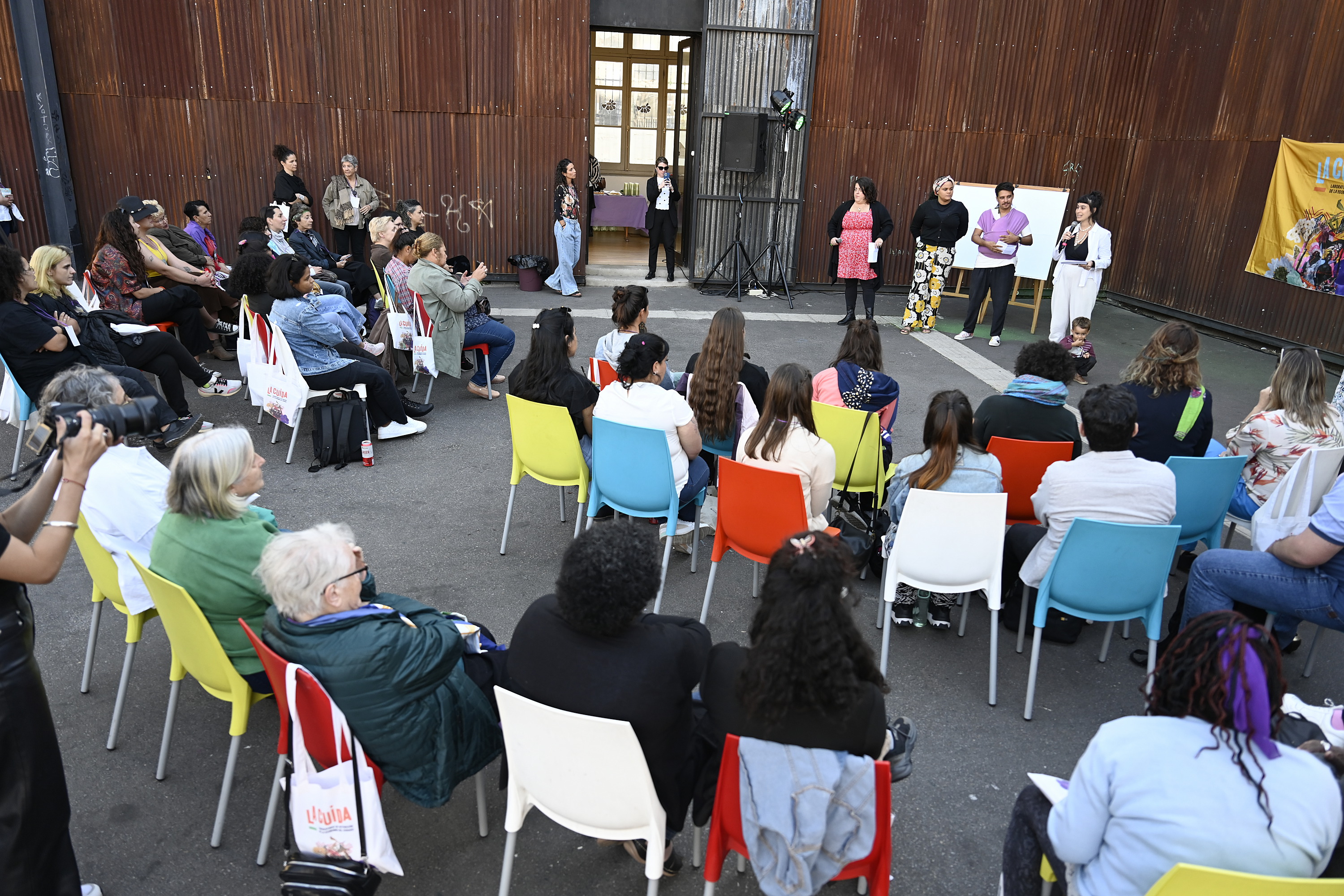 Actividad del laboratorio de activación de la economía del cuidado, La Cuida, en plaza de las Pioneras