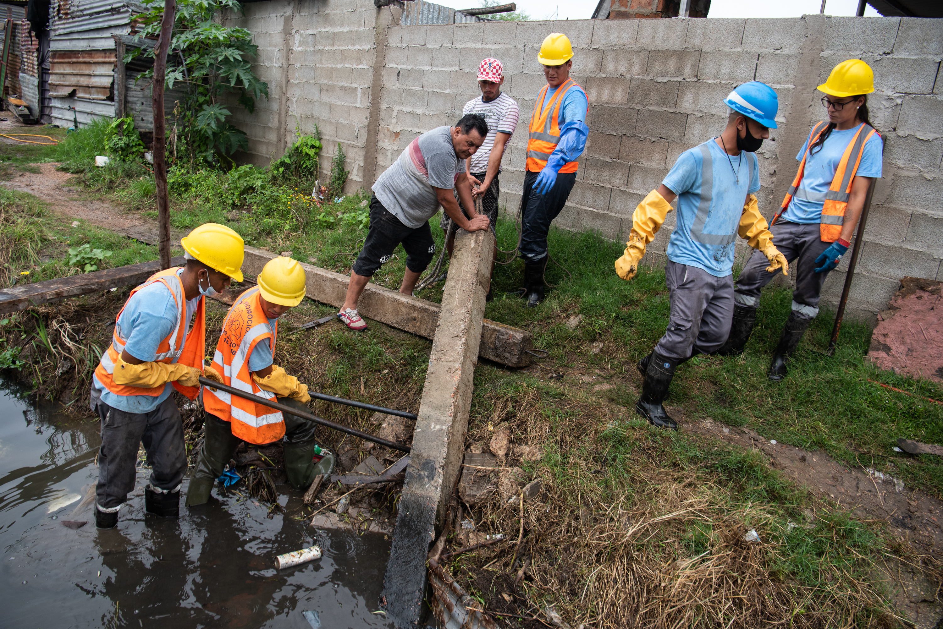 Intervención del servicio de Mantenimiento de Cuerpos de Agua en el barrio Chacarita de los Padres