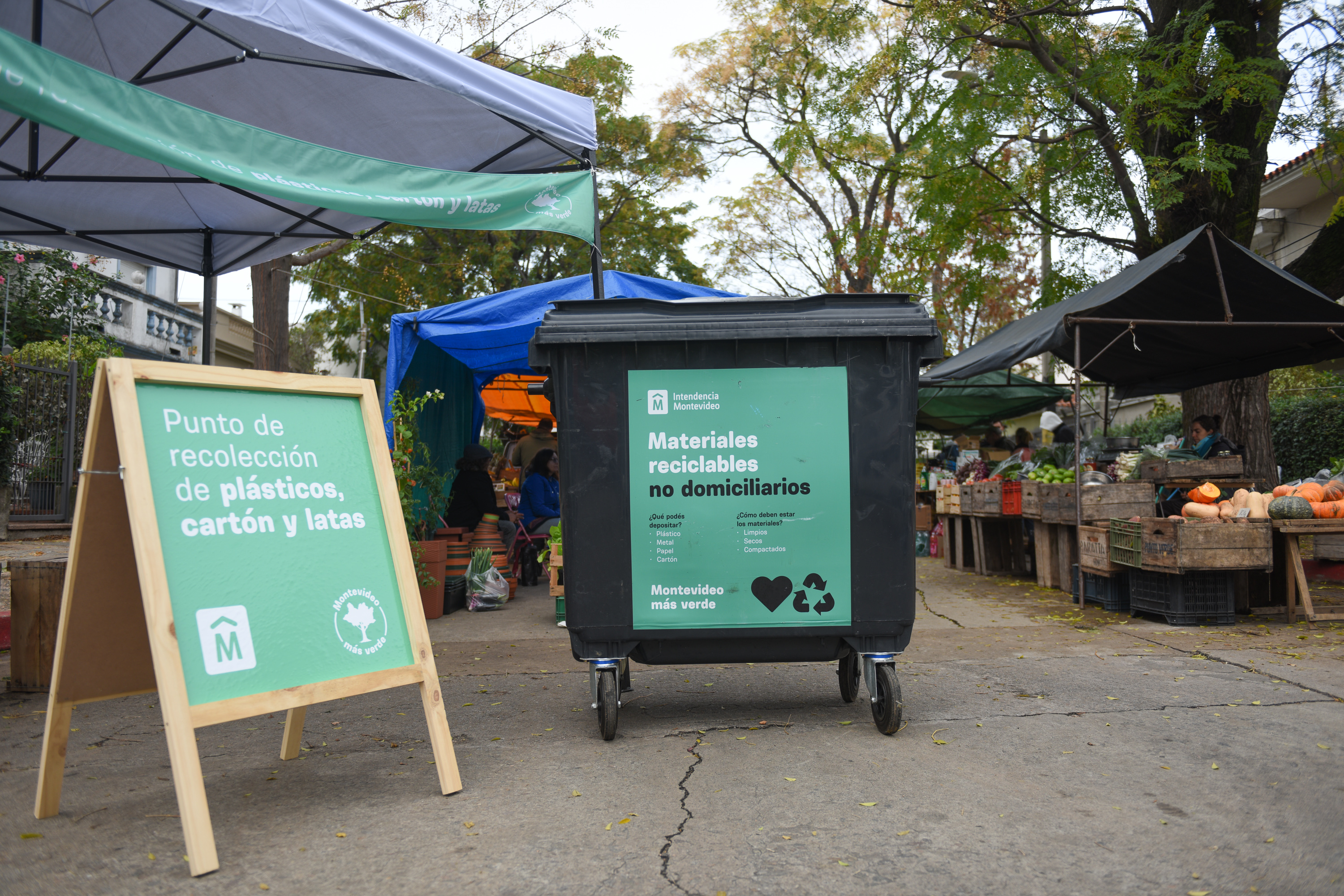 Instalación de puntos de recolección de plástico, cartón y latas en ferias de Montevideo
