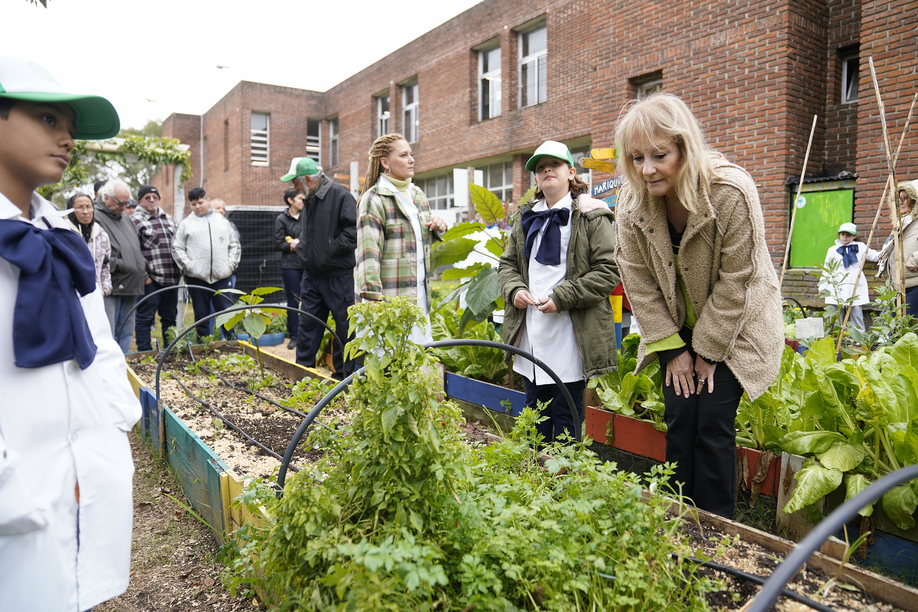 Visita de la intendenta Carolina Cosse a la huerta comunitaria en la escuela Nº 249