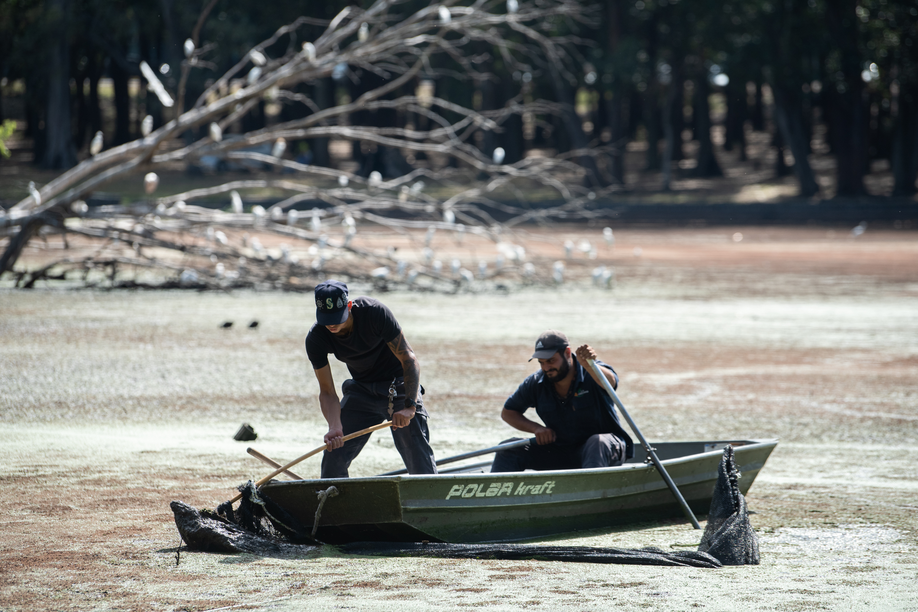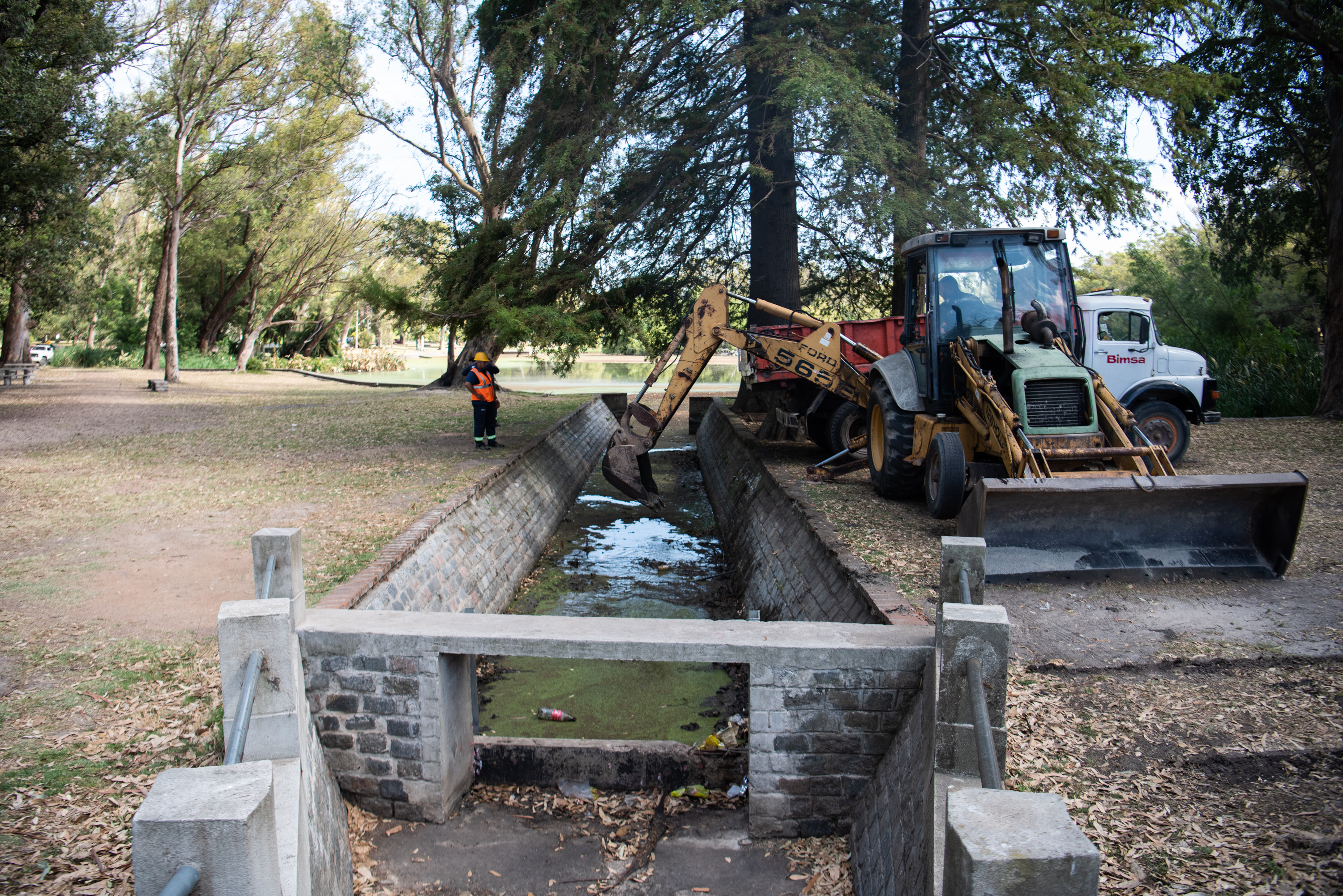 Limpieza en el lago del Parque Rivera