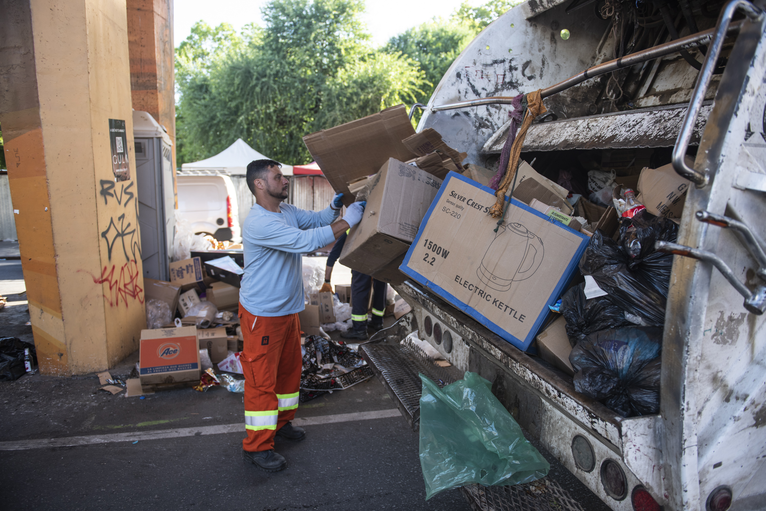 Operativo de limpieza en feria vía blanca de Reyes en la Avenida 8 de Octubre