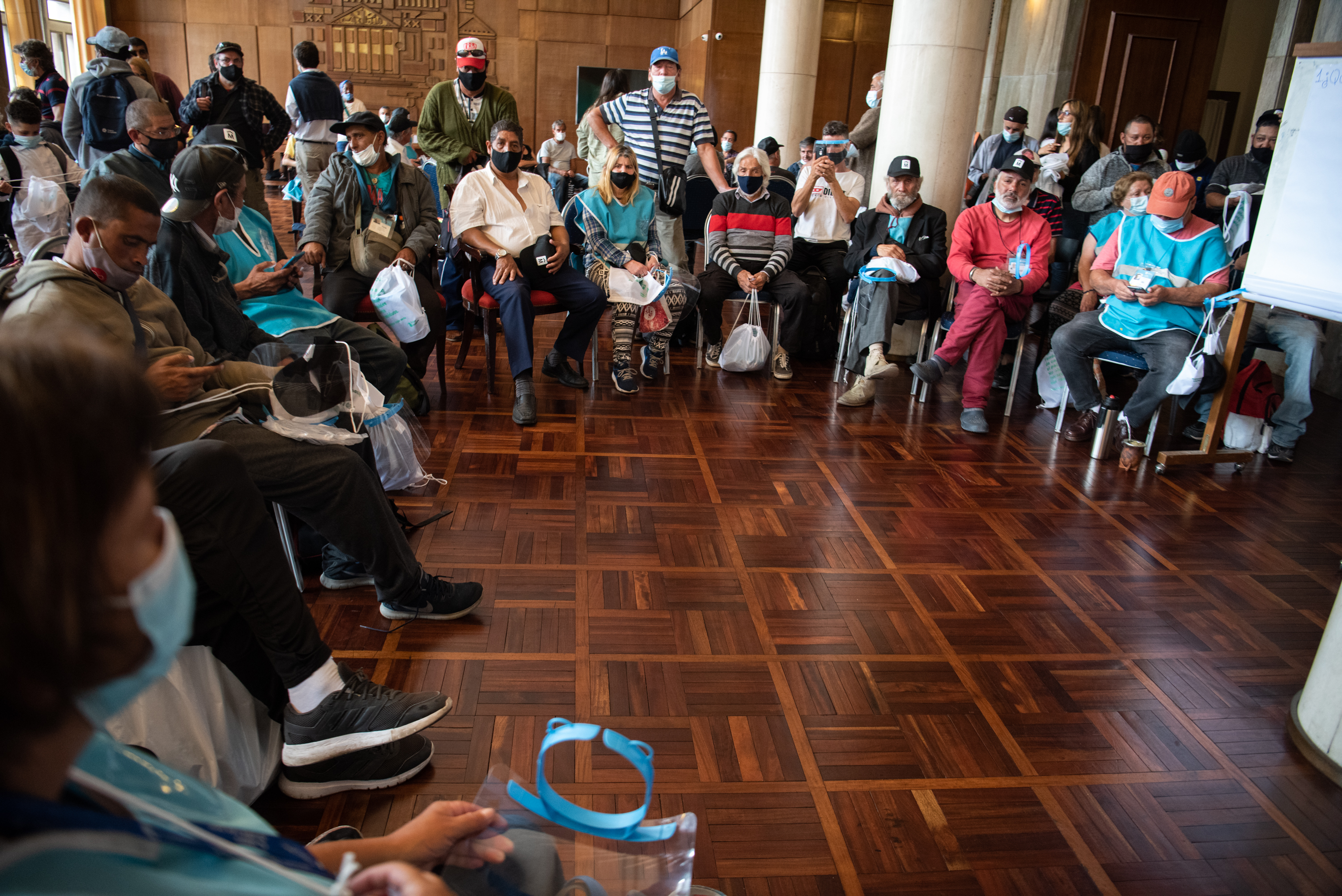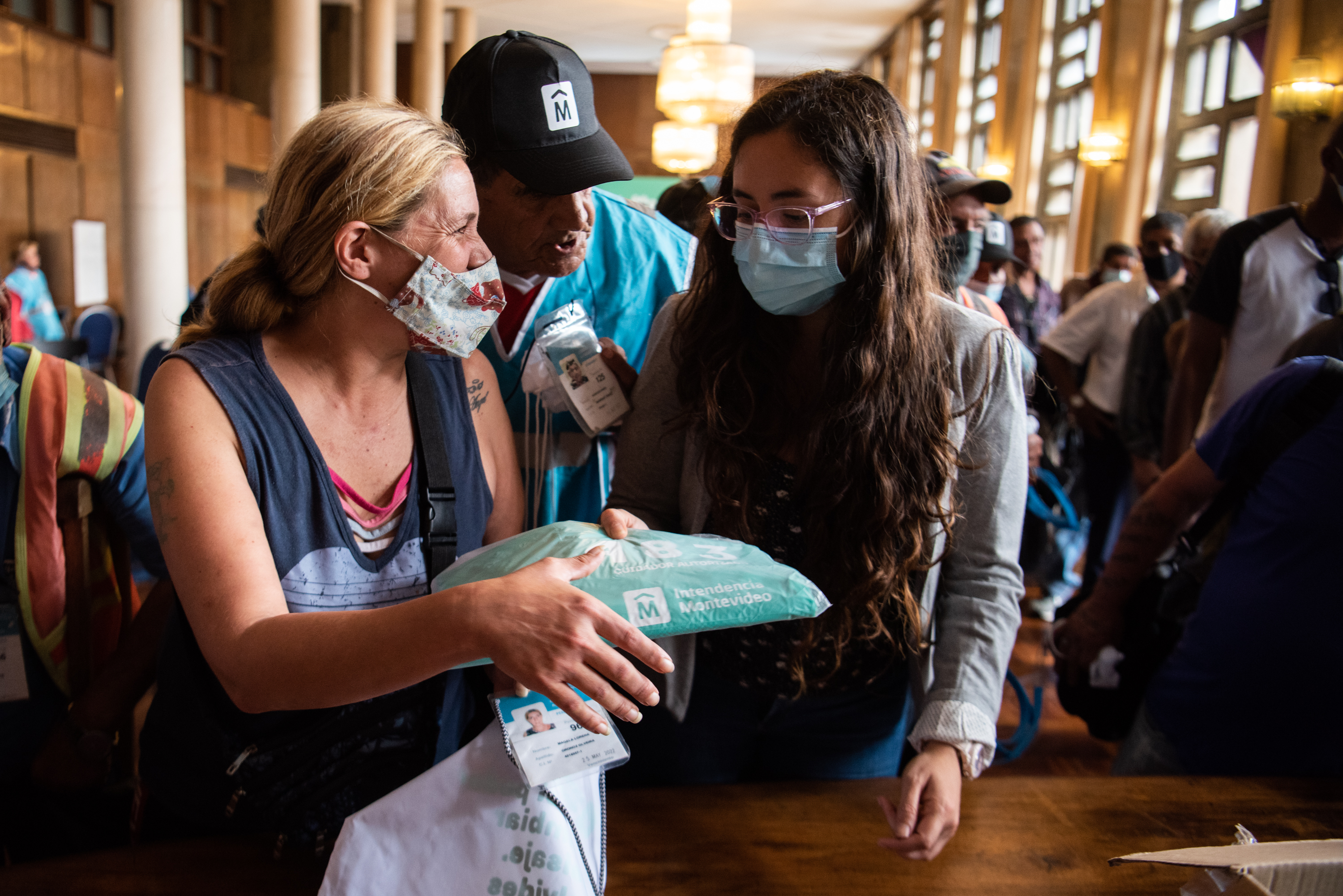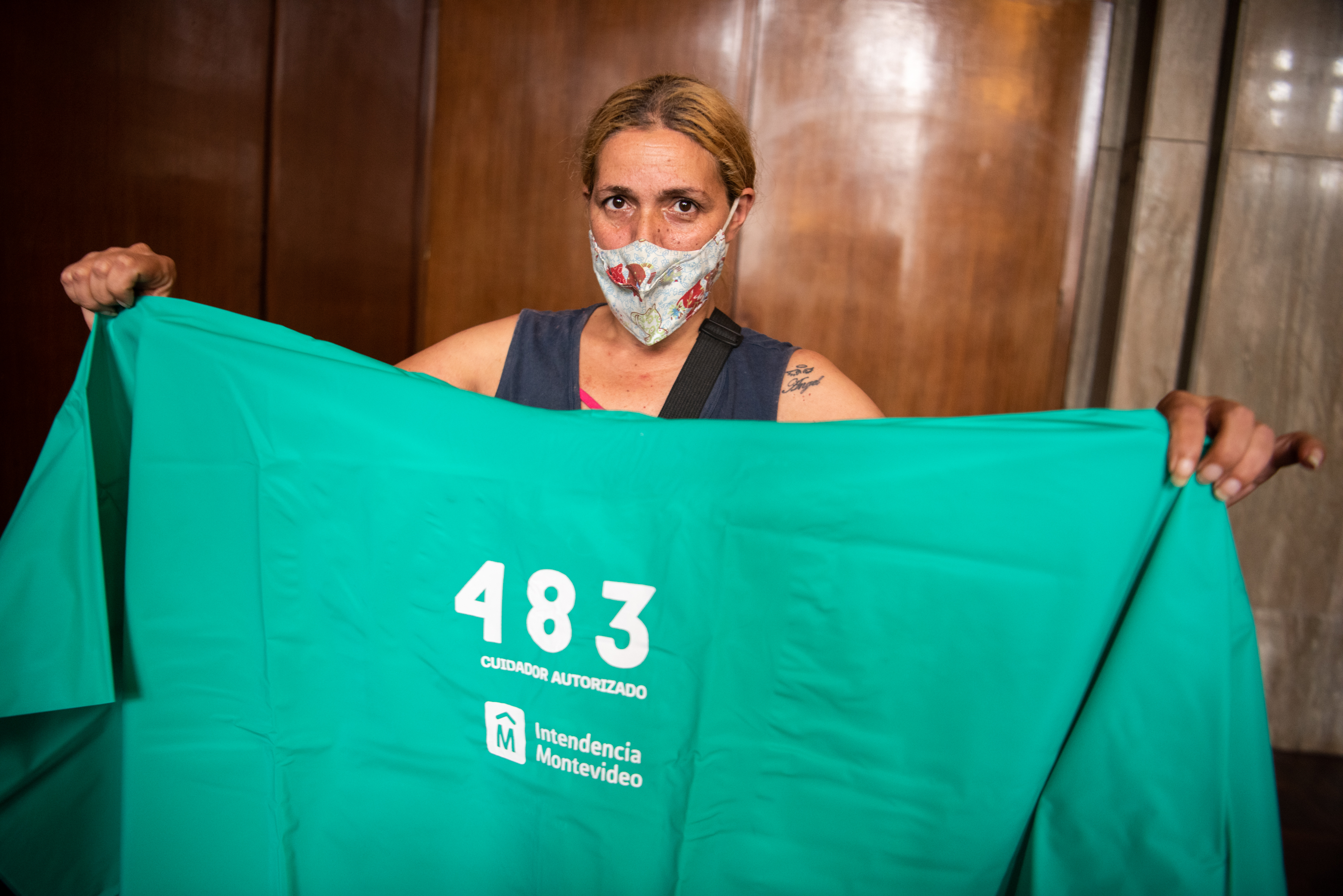 Entrega de capas de lluvia a cuidadoras/es de vehículos registrados en la Sala Ernesto de los Campos