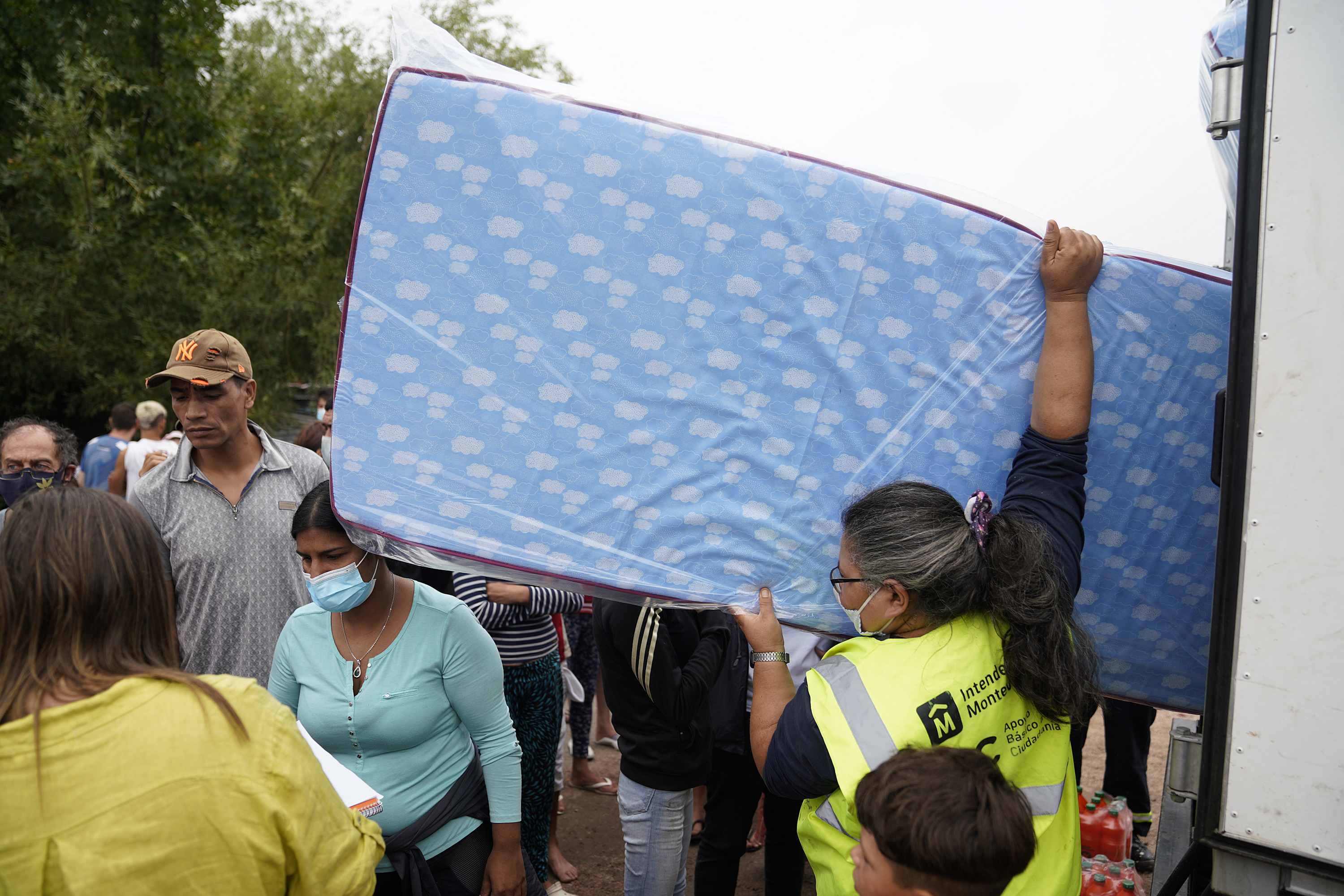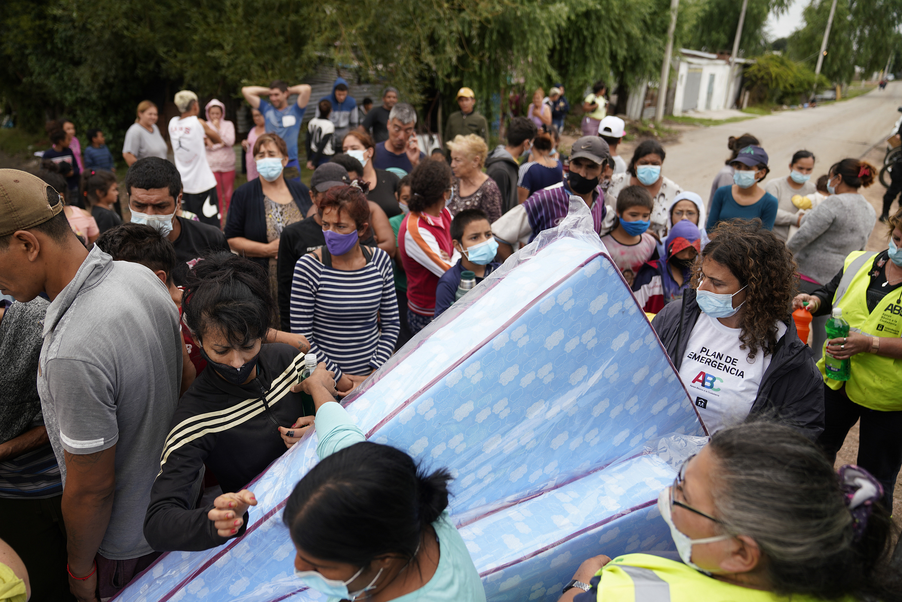 Donación de colchones y elementos de limpieza en el asentamiento Santa Teresa para familias damnificadas por las inundaciones