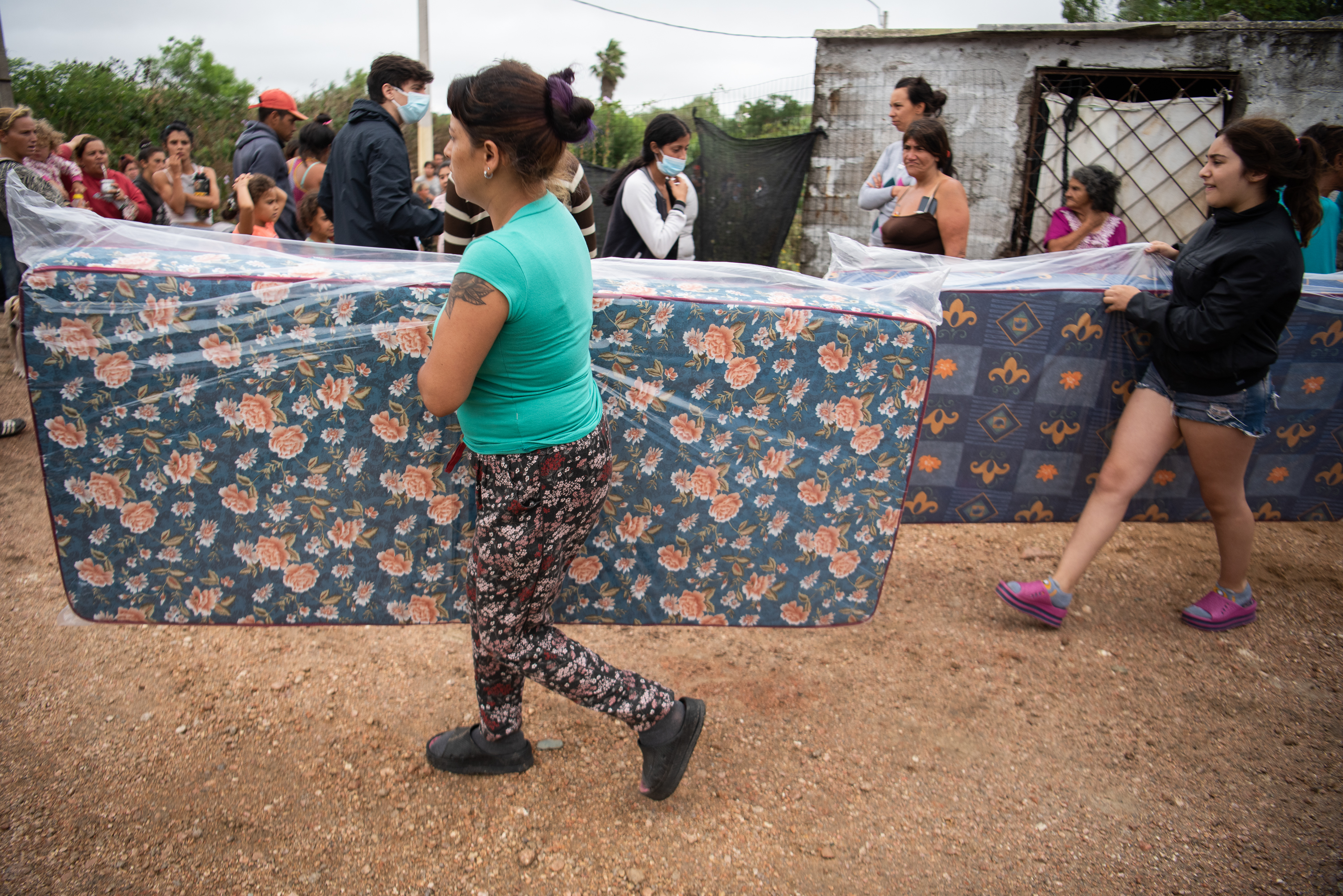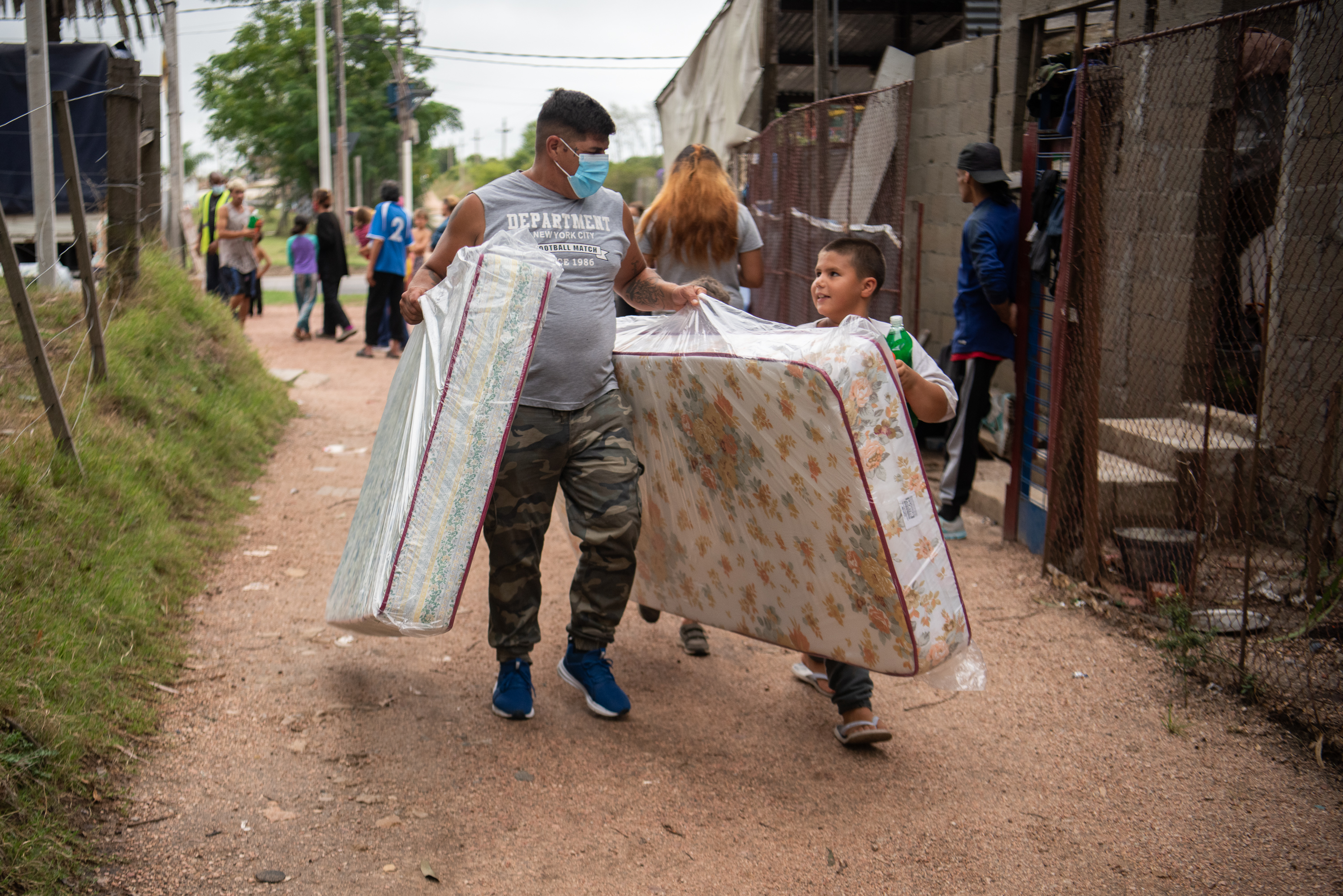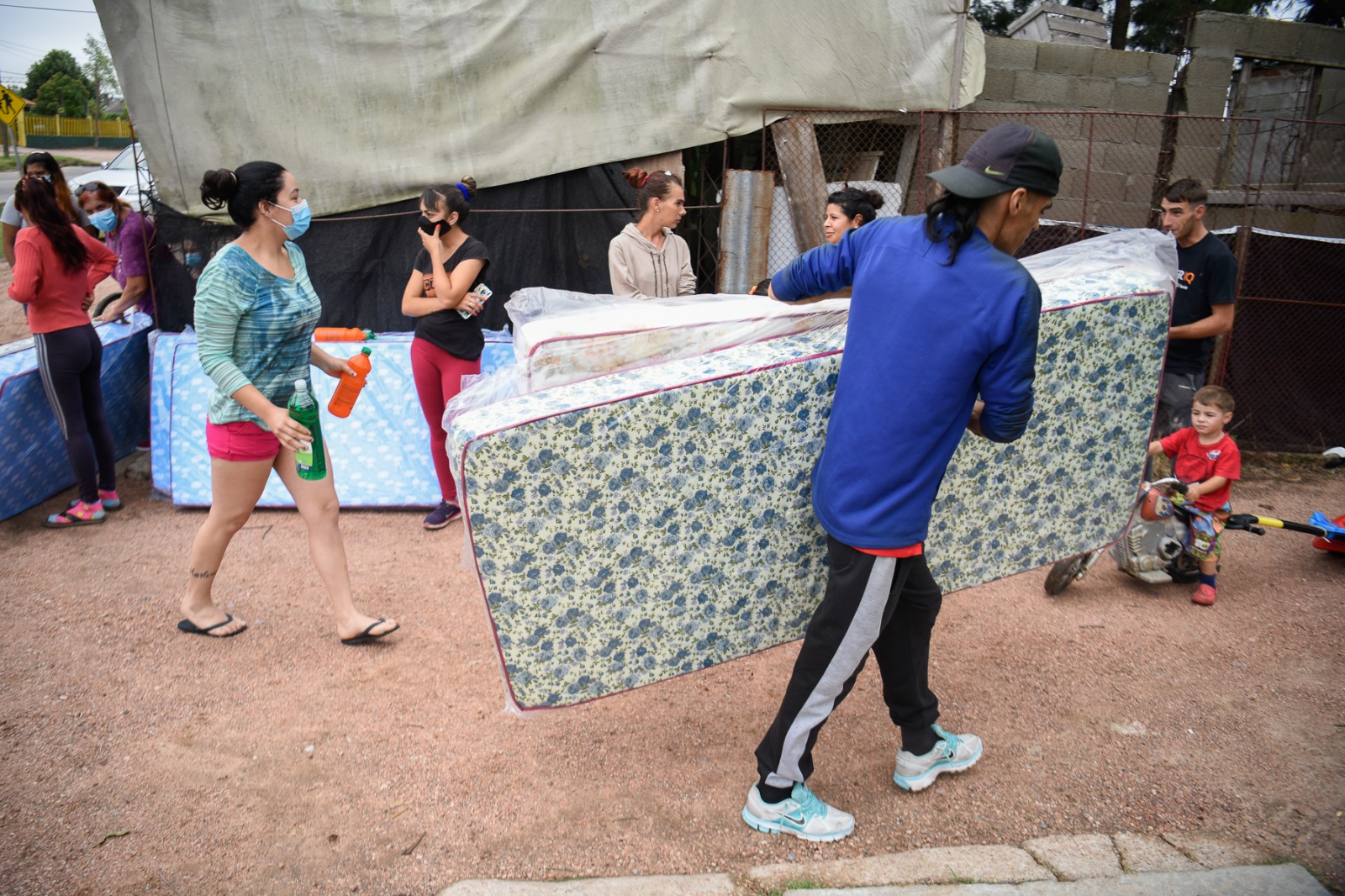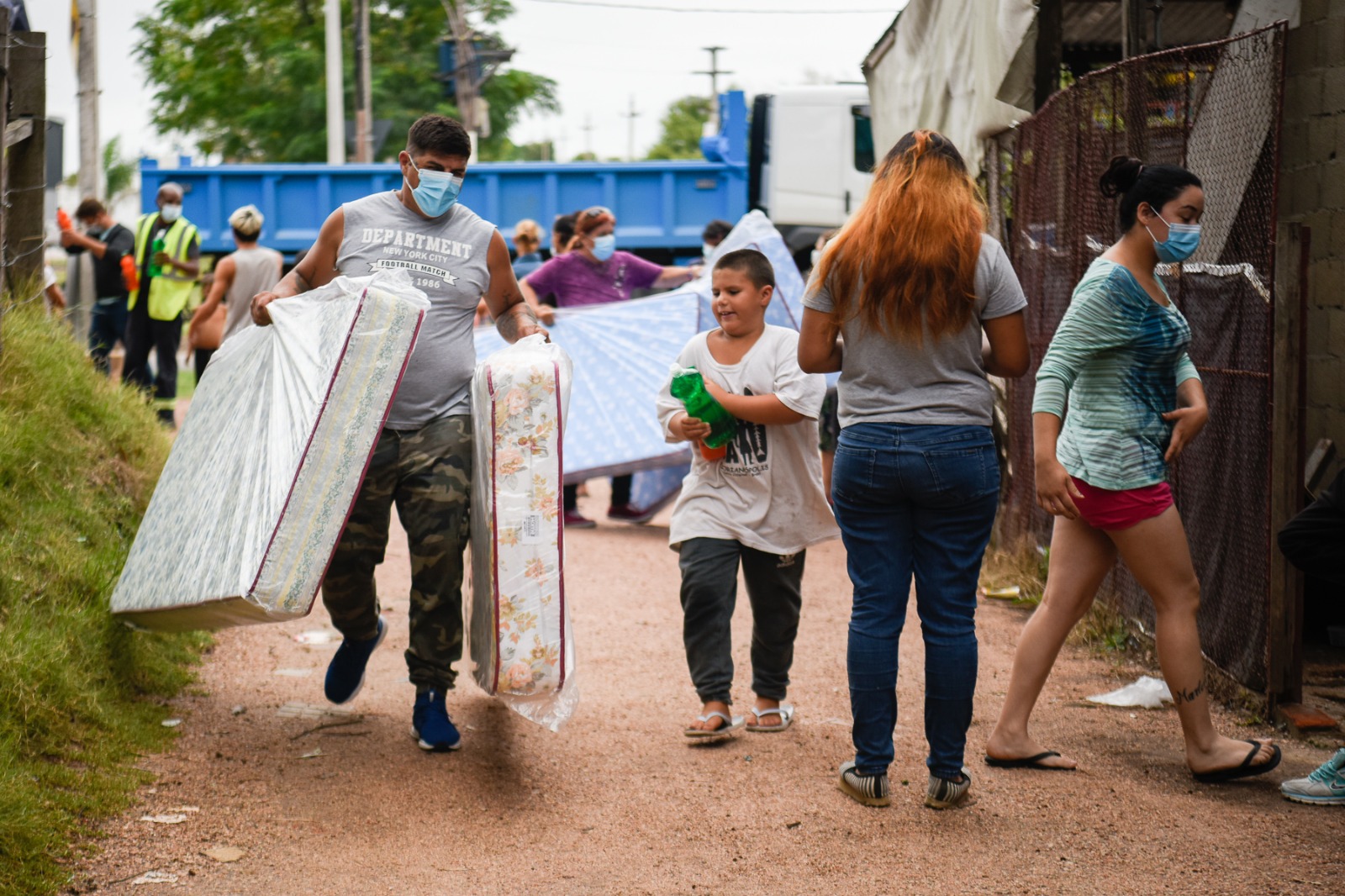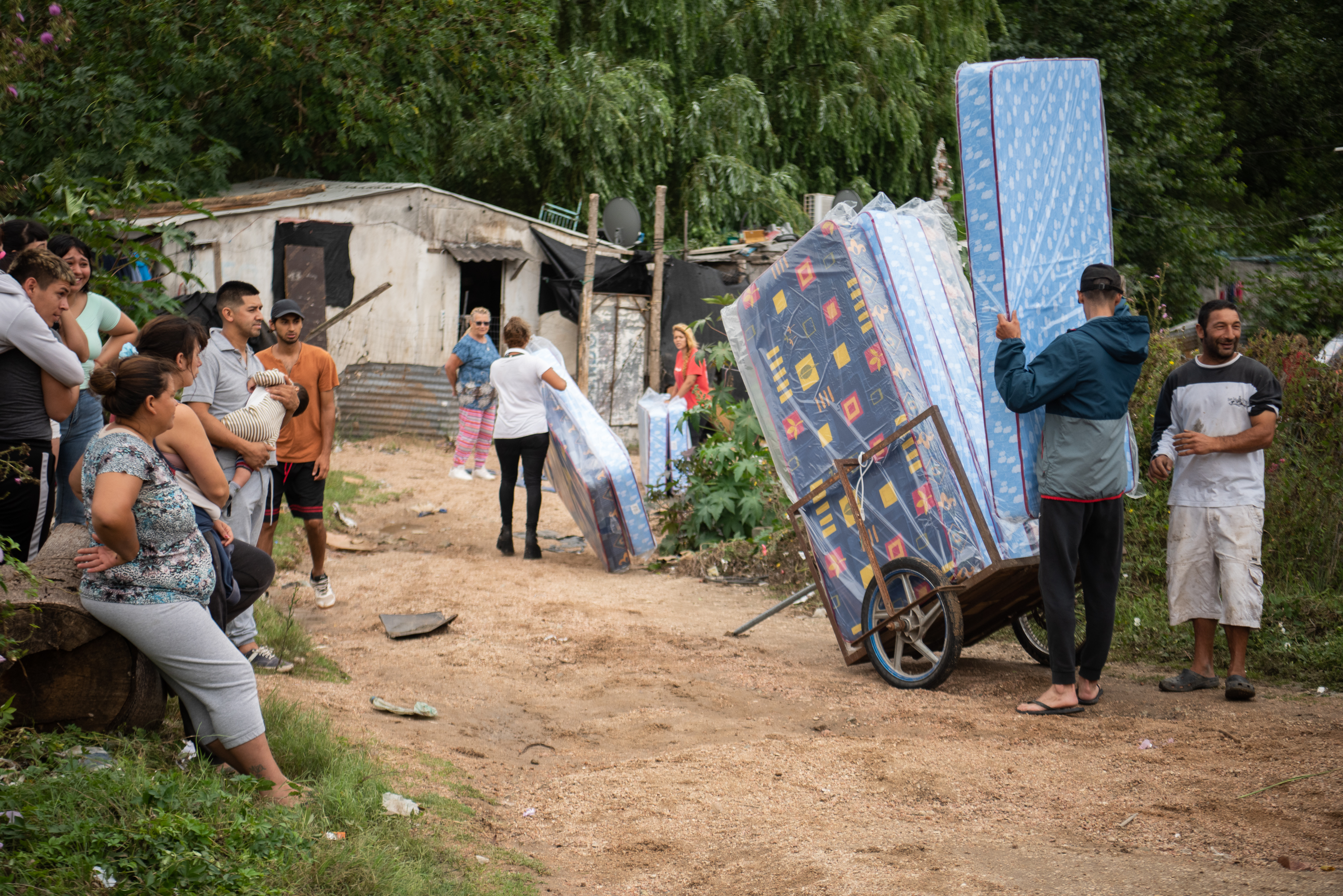 Donación de colchones y elementos de limpieza en el asentamiento El Progreso para familias damnificadas por las inundaciones