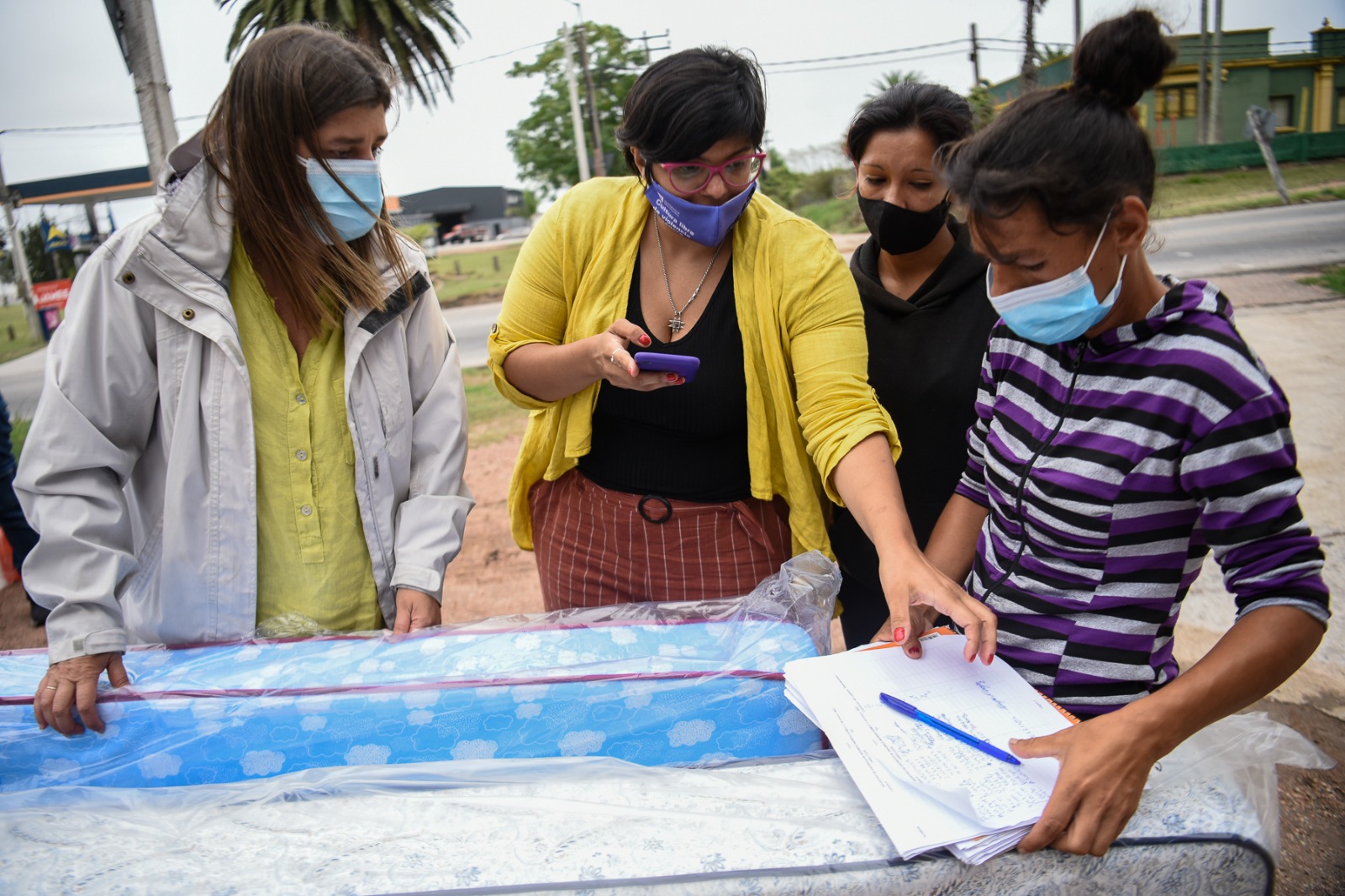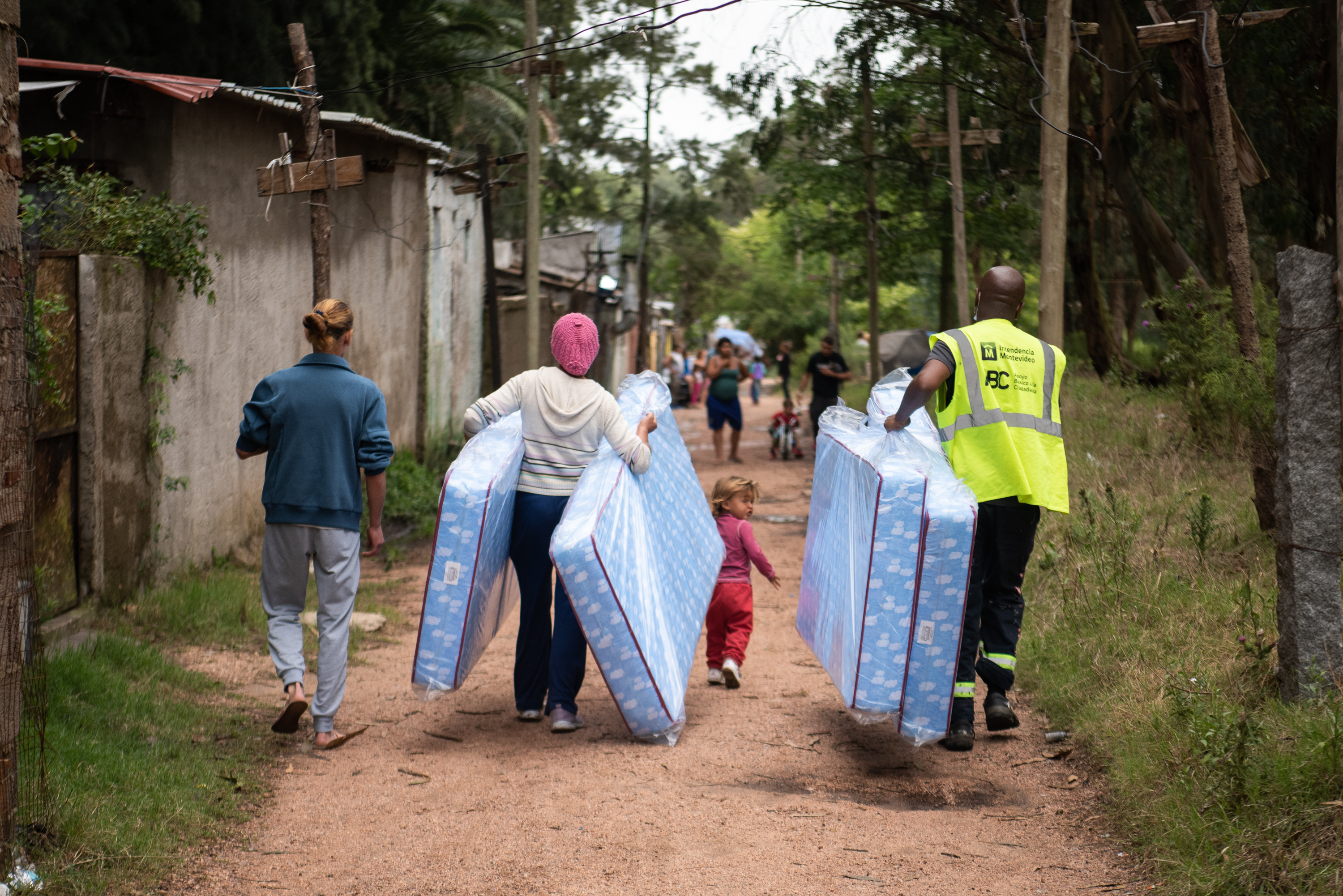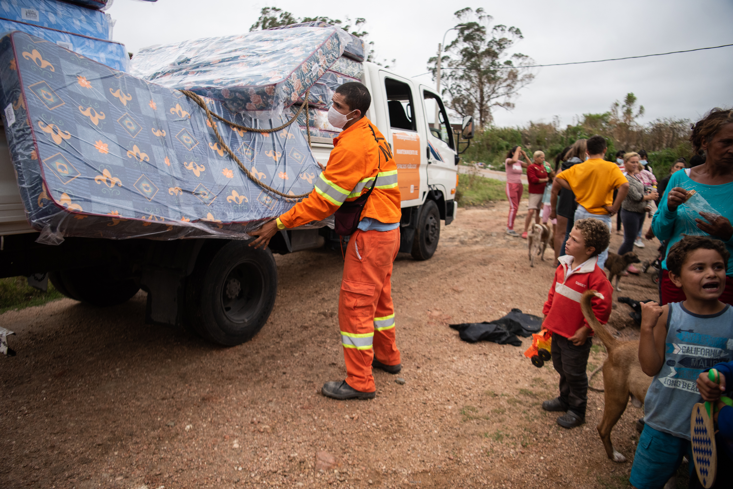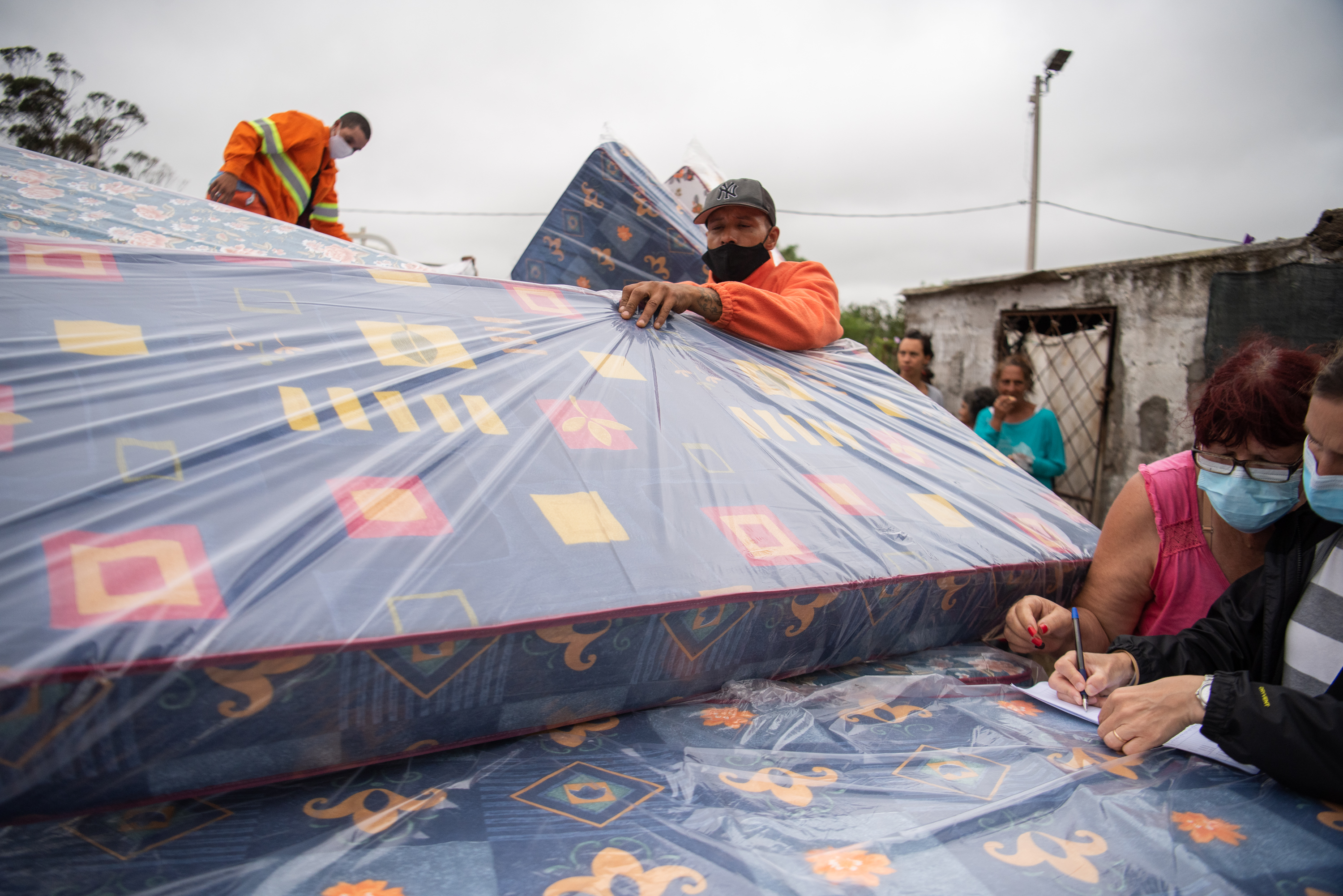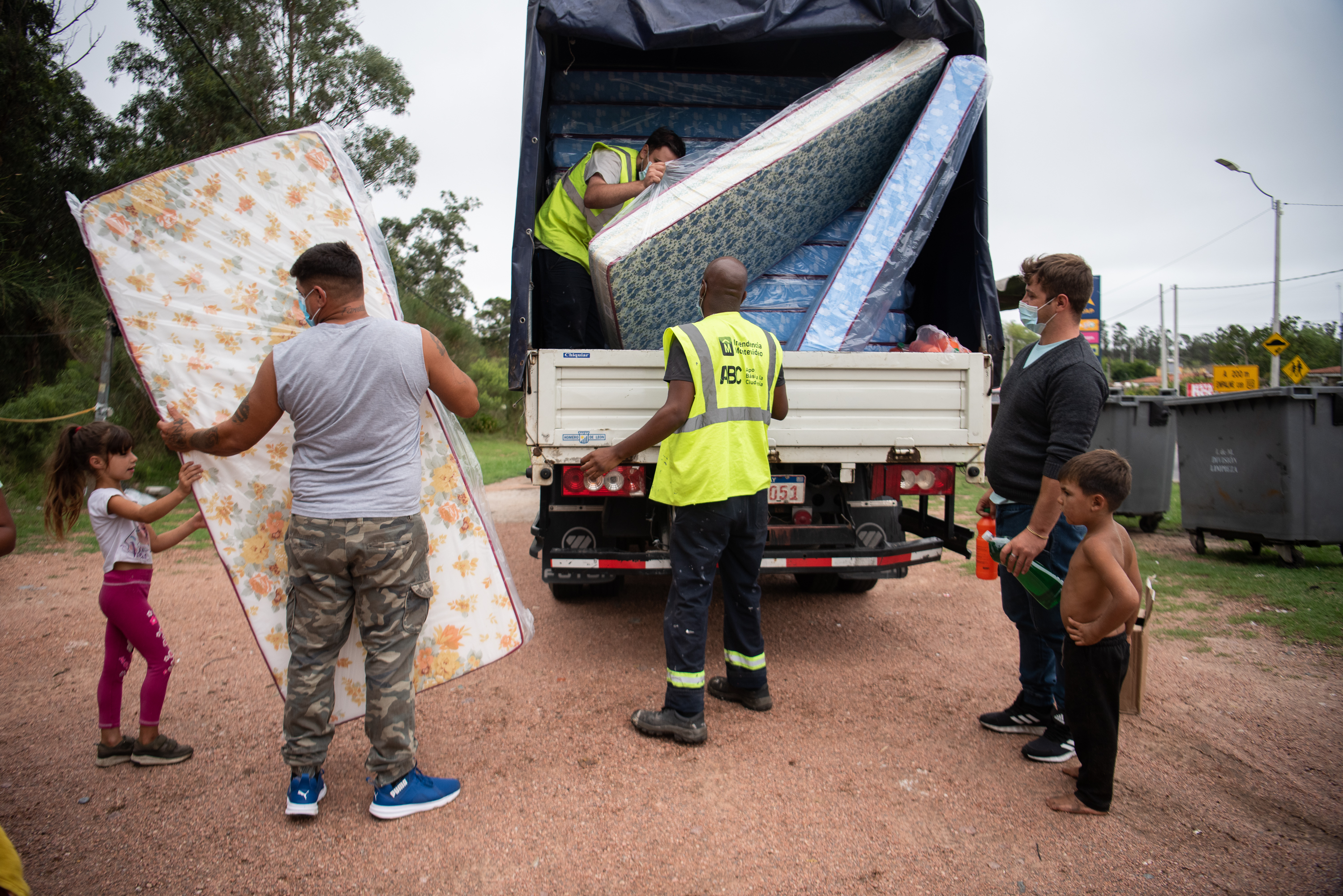 Donación de colchones y elementos de limpieza en el asentamiento El Progreso para familias damnificadas por las inundaciones