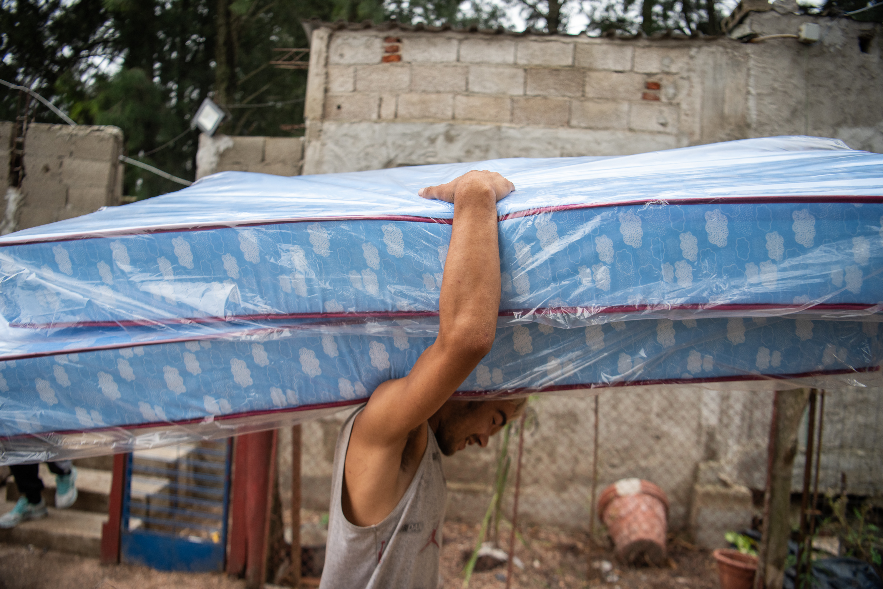 Donación de colchones en barrio La Chacarita en apoyo a las familias damnificadas por las inundaciones