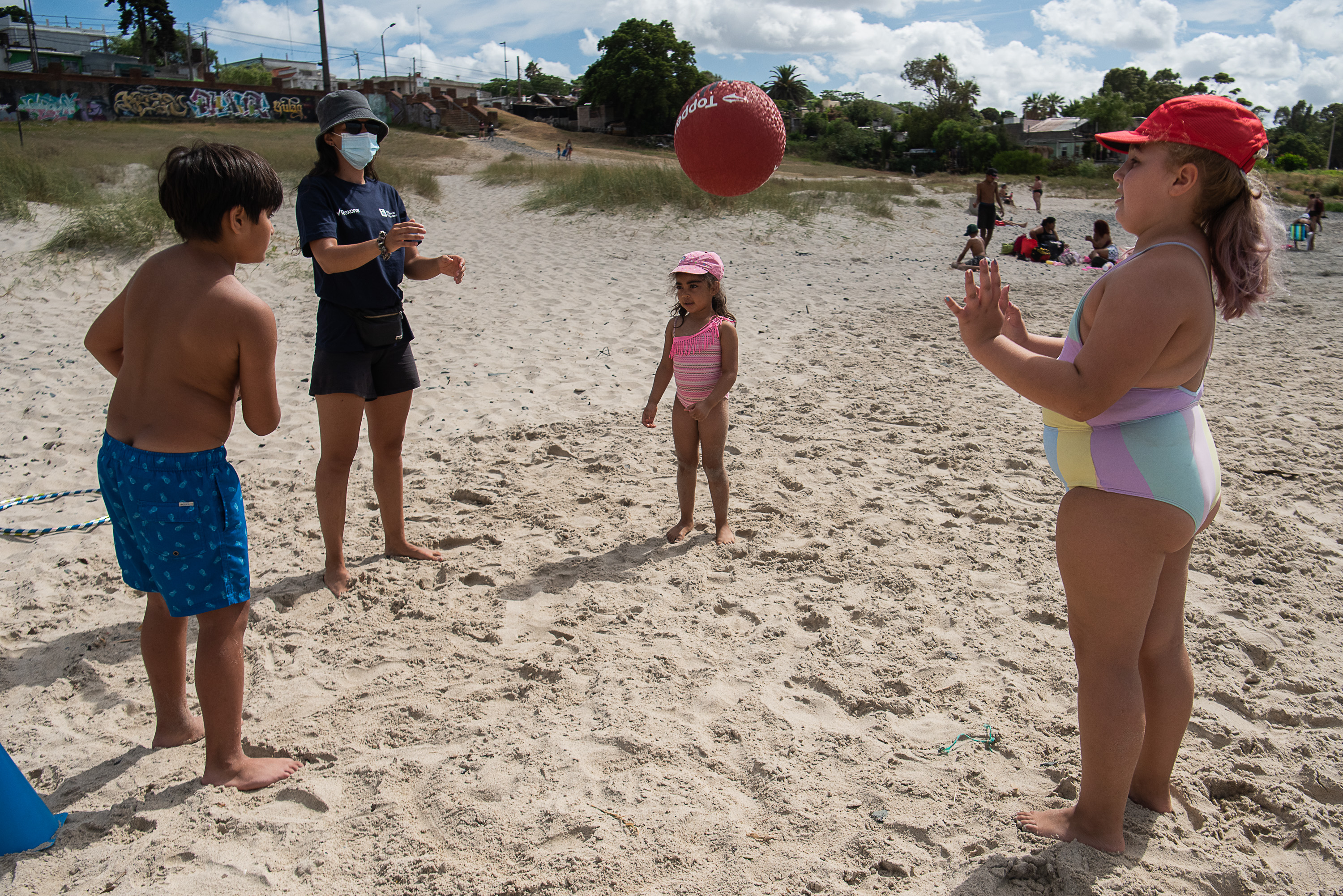 Actividades deportivas y recrativas con niñas y niños en playa del Cerro