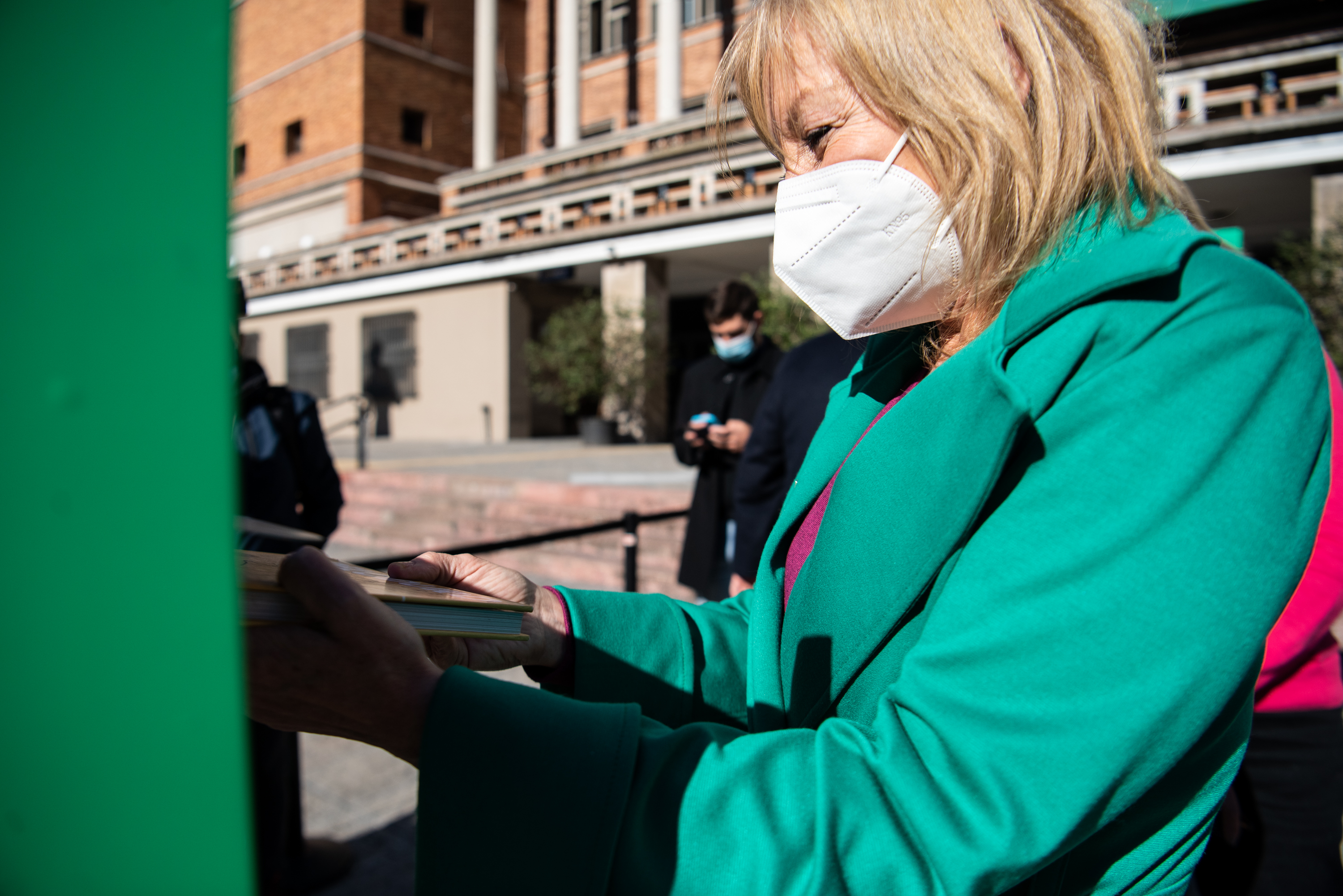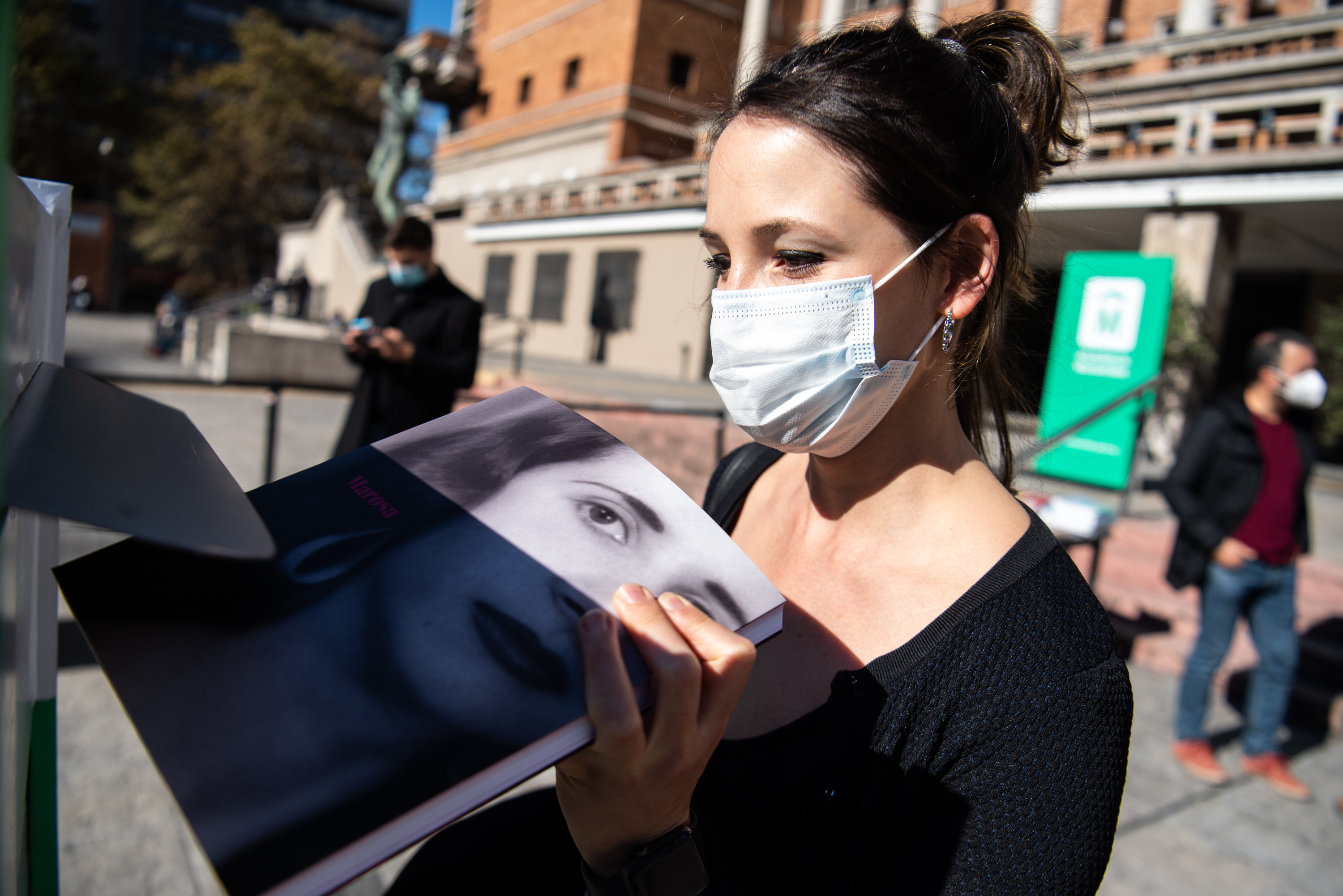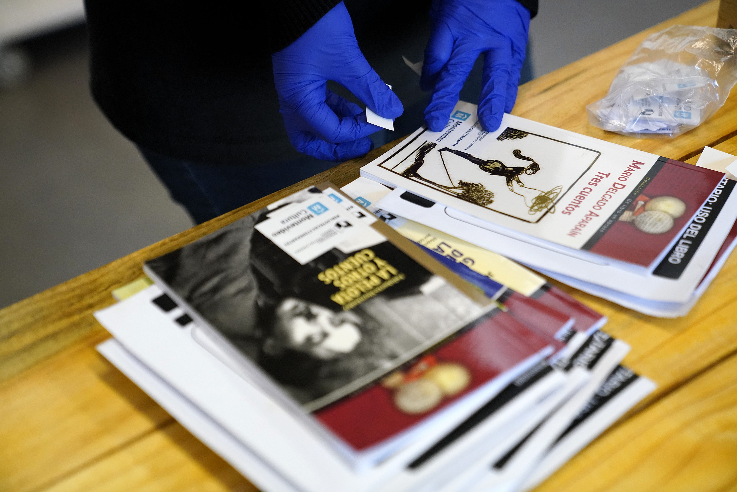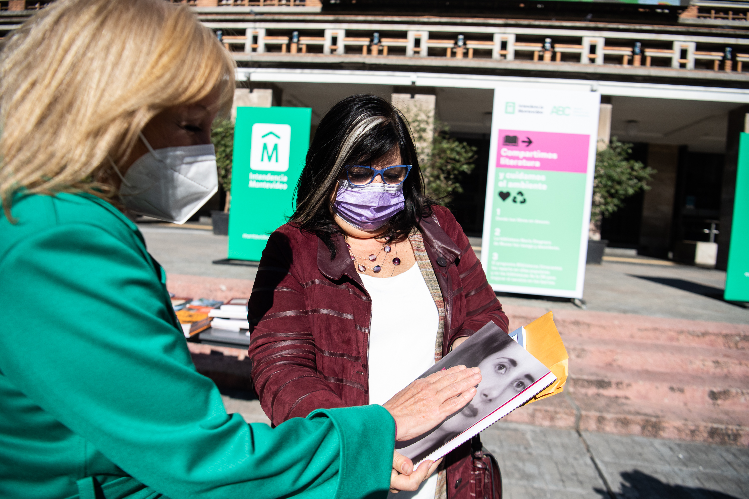 Donación de libros en la explanada de la Intendencia de Montevideo