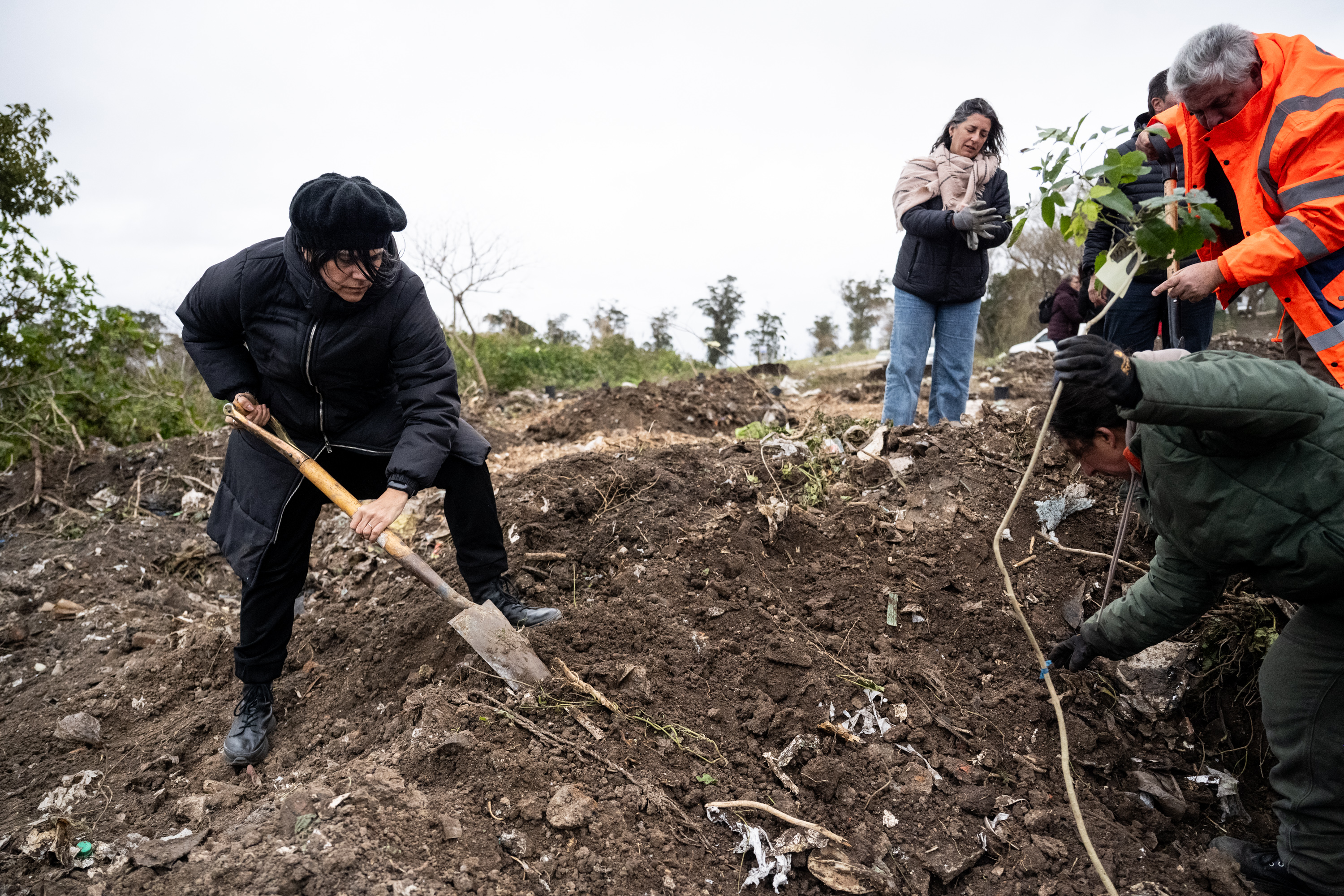 Directora de la División Limpieza y Gestión de Residuos, Chiara Fioretto durante la plantación de árboles en el parque Carlos Vaz Ferreira