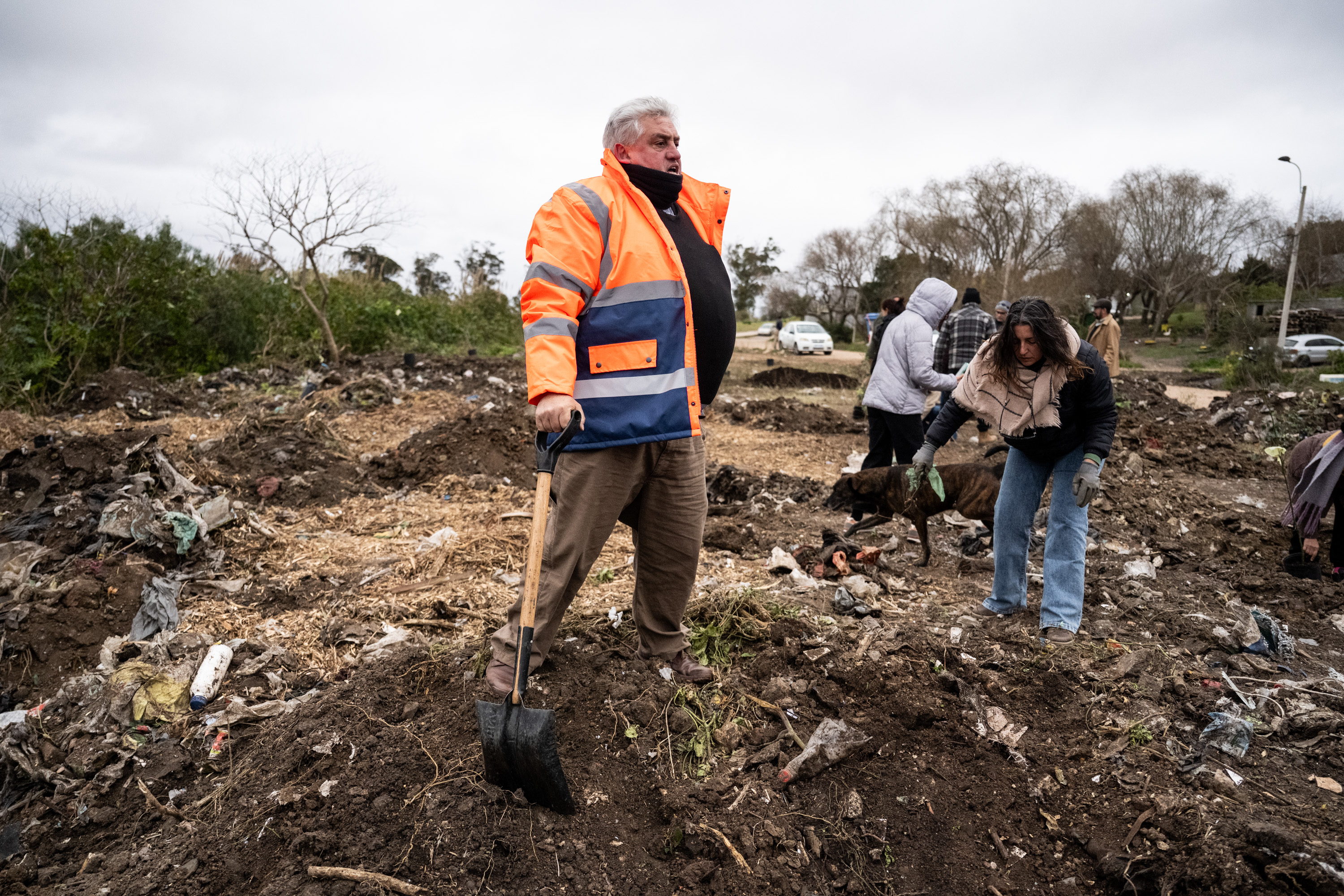 Director de Desarrollo Ambiental, Leonardo Herou durante la plantación de árboles en el parque Carlos Vaz Ferreira