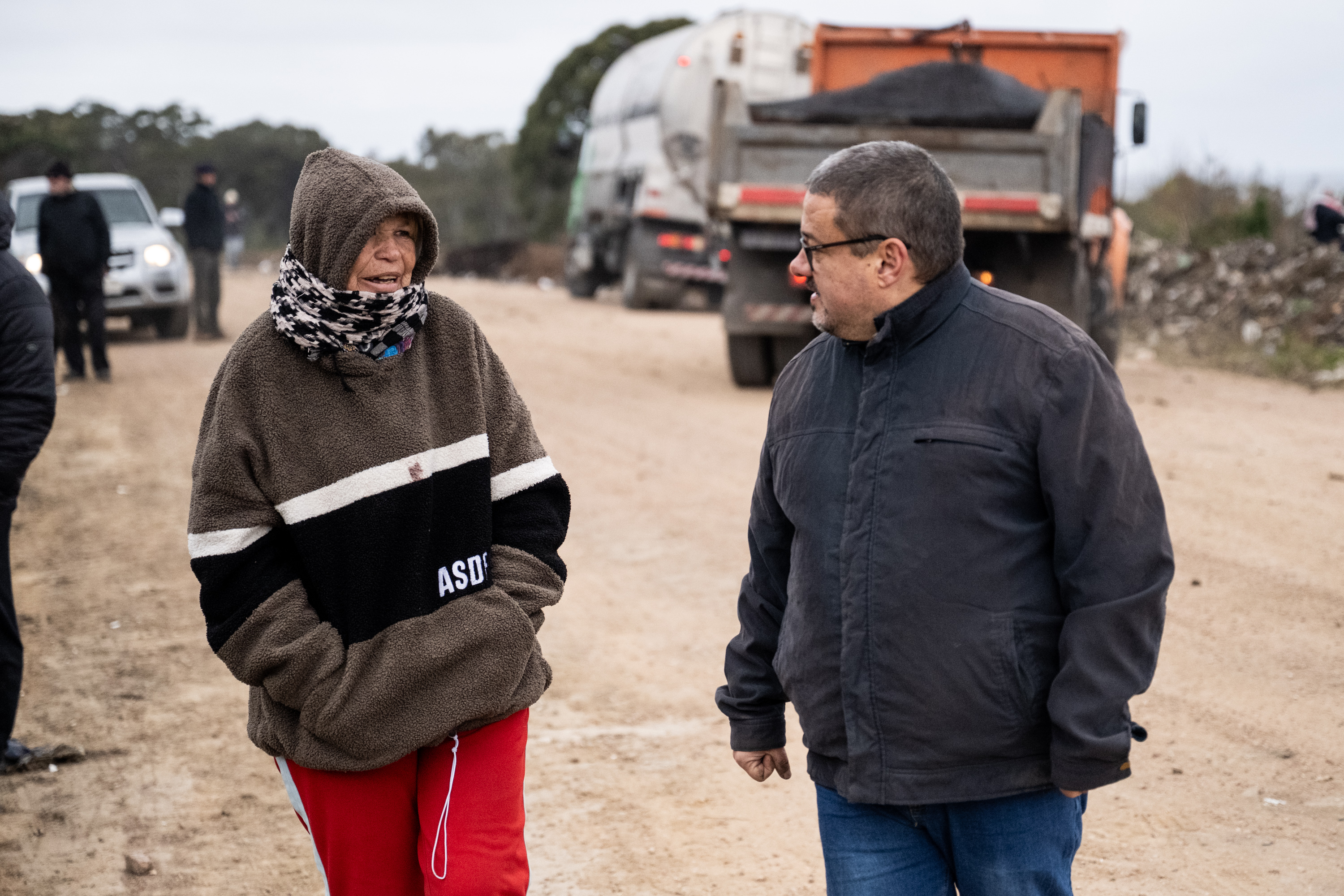 Director de Desarrollo Ambiental, Leonardo Herou durante la instalación de contenedores en el barrio Los Sueños