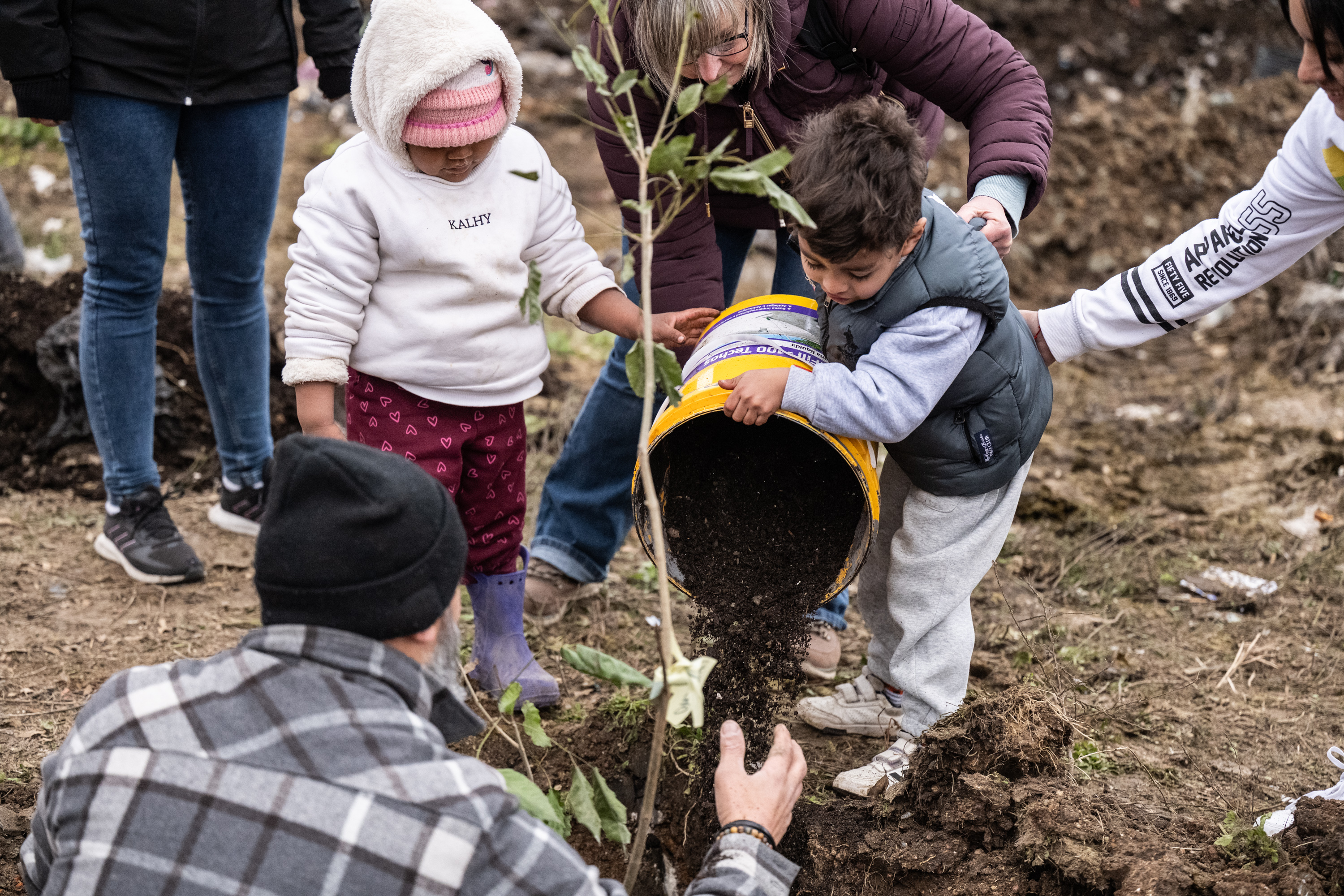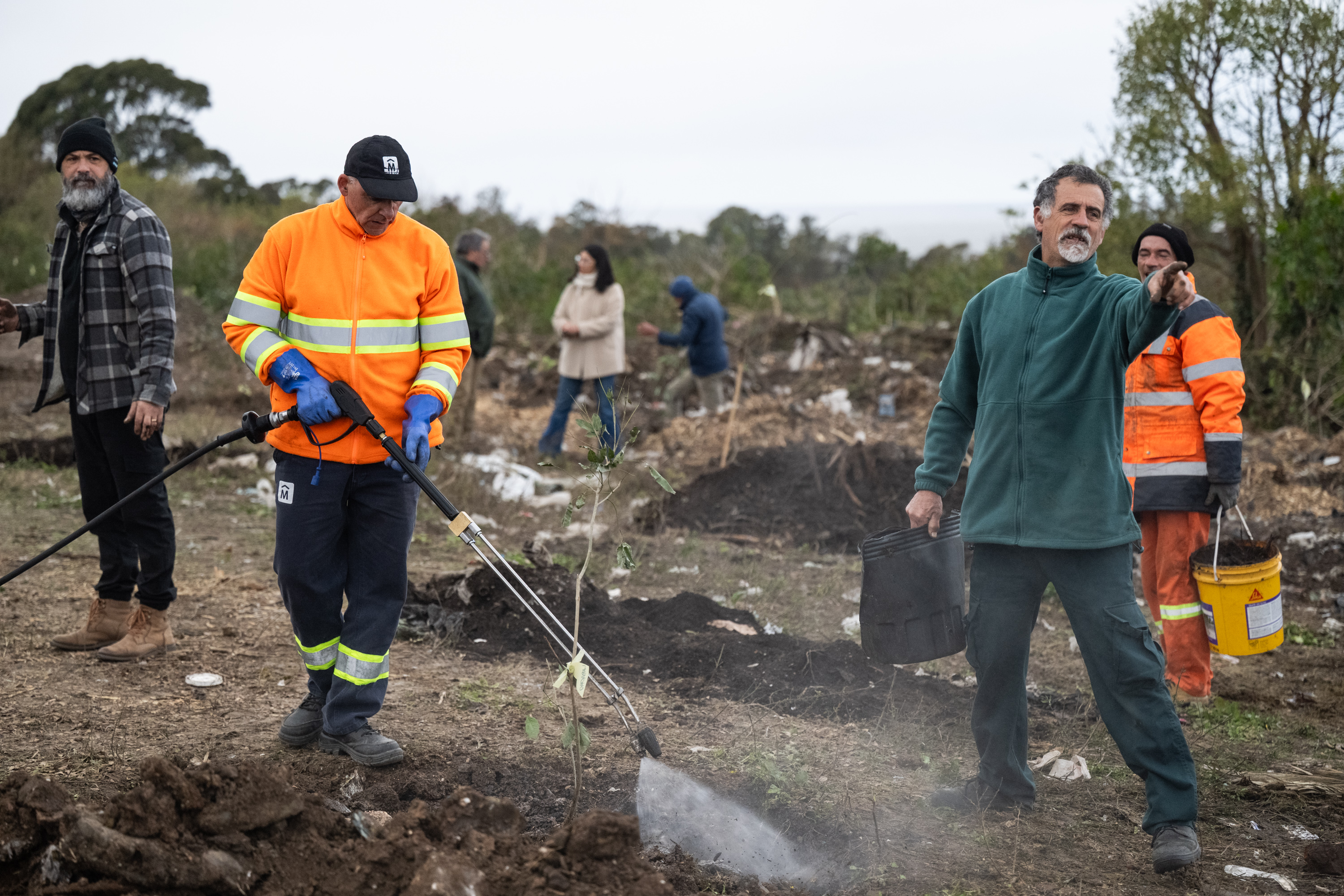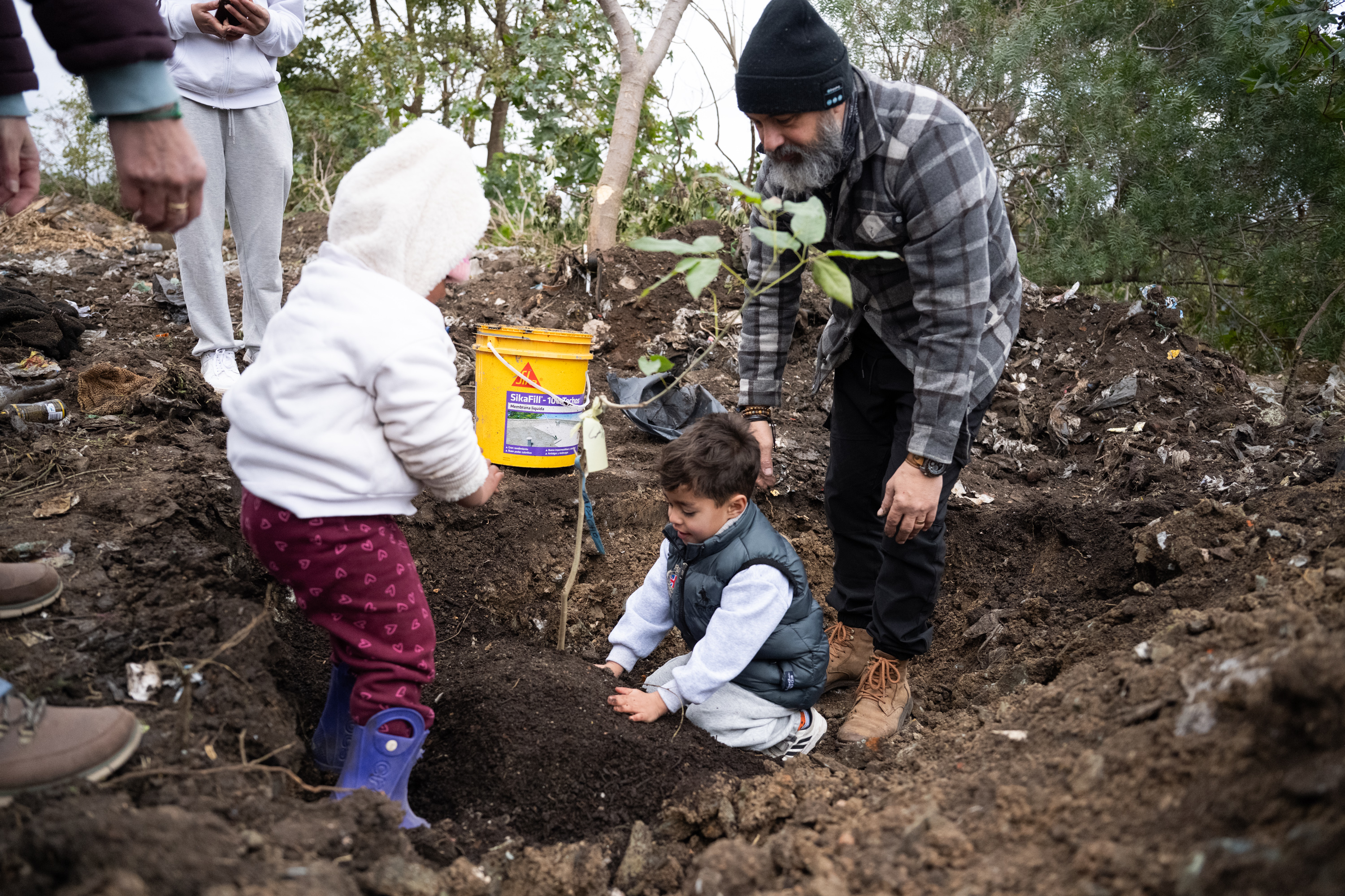 Plantación de árboles nativos en el parque Carlos Vaz Ferreira