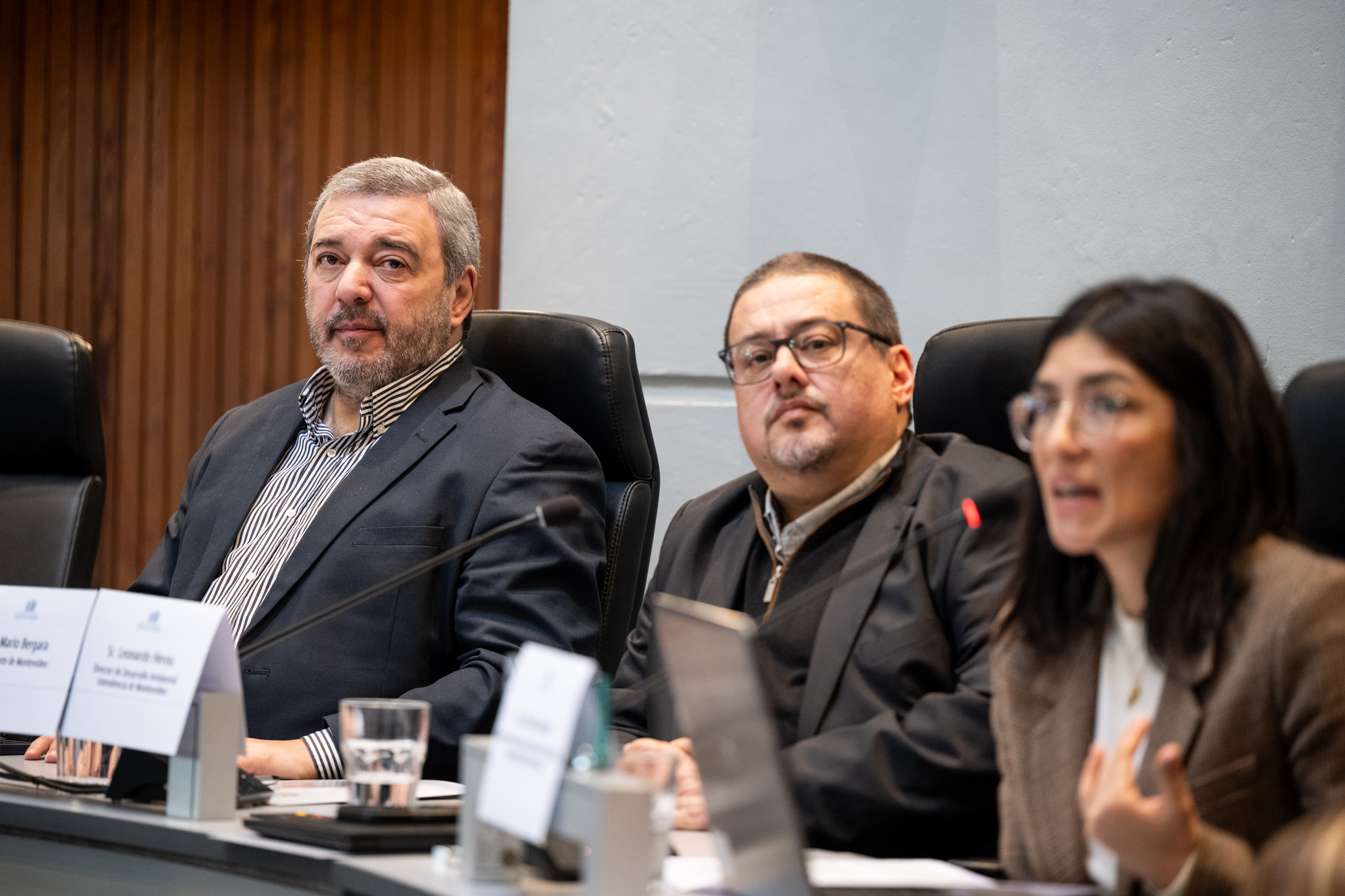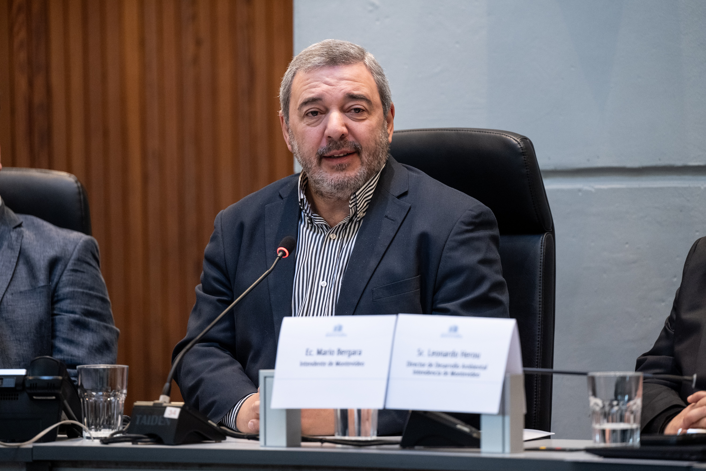 Intendente Mario Bergara junto al director de Desarrollo Ambiental Leonardo Herou, en la presentación de la Agenda Ambiental Estratégica de Montevideo: hacia un Plan Integral de Limpieza y Gestión de Residuos