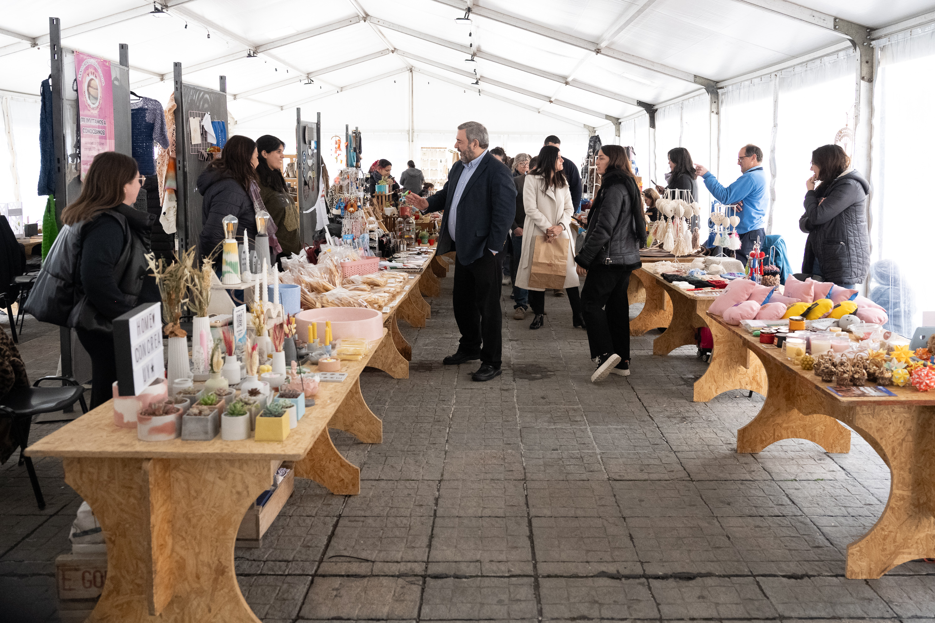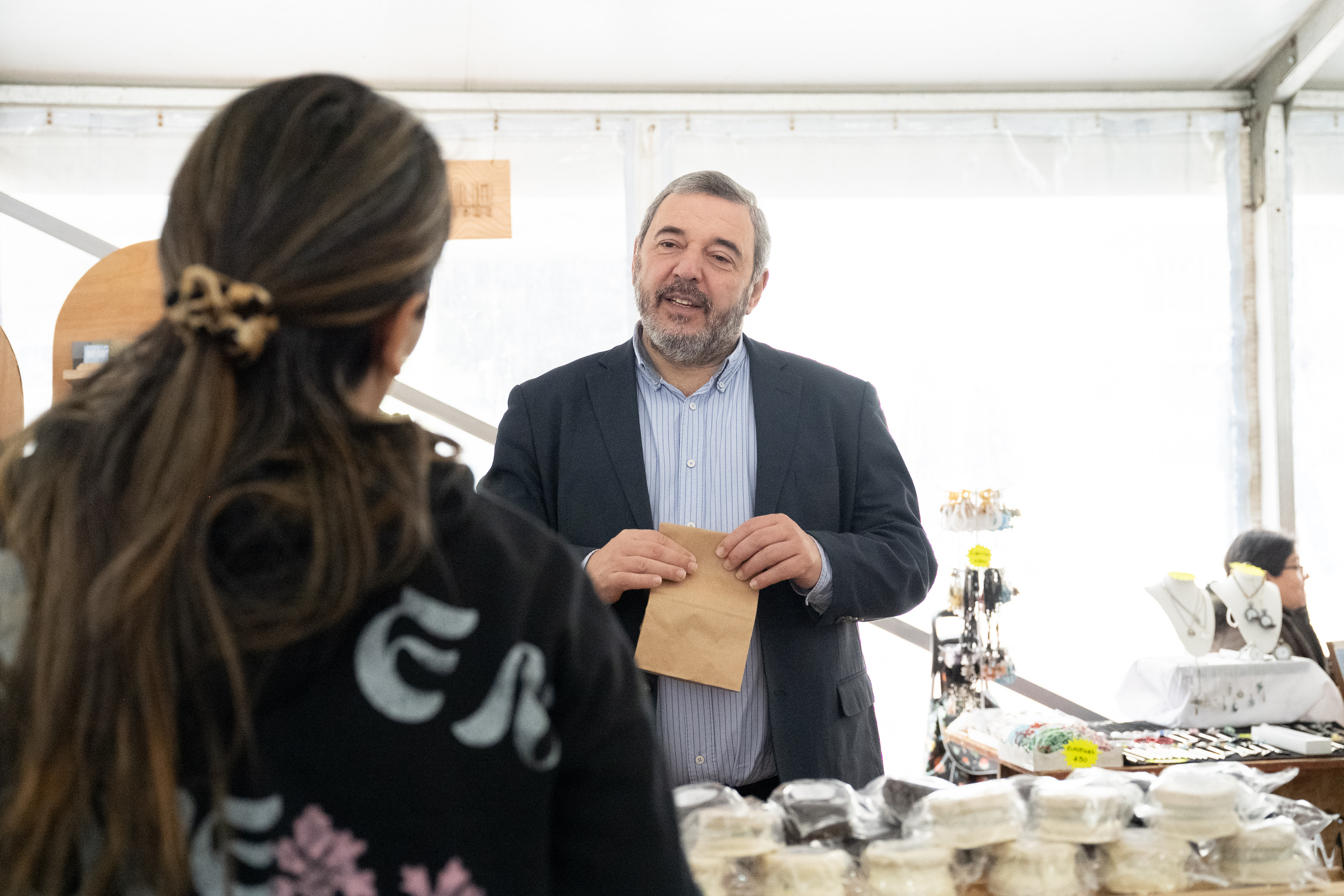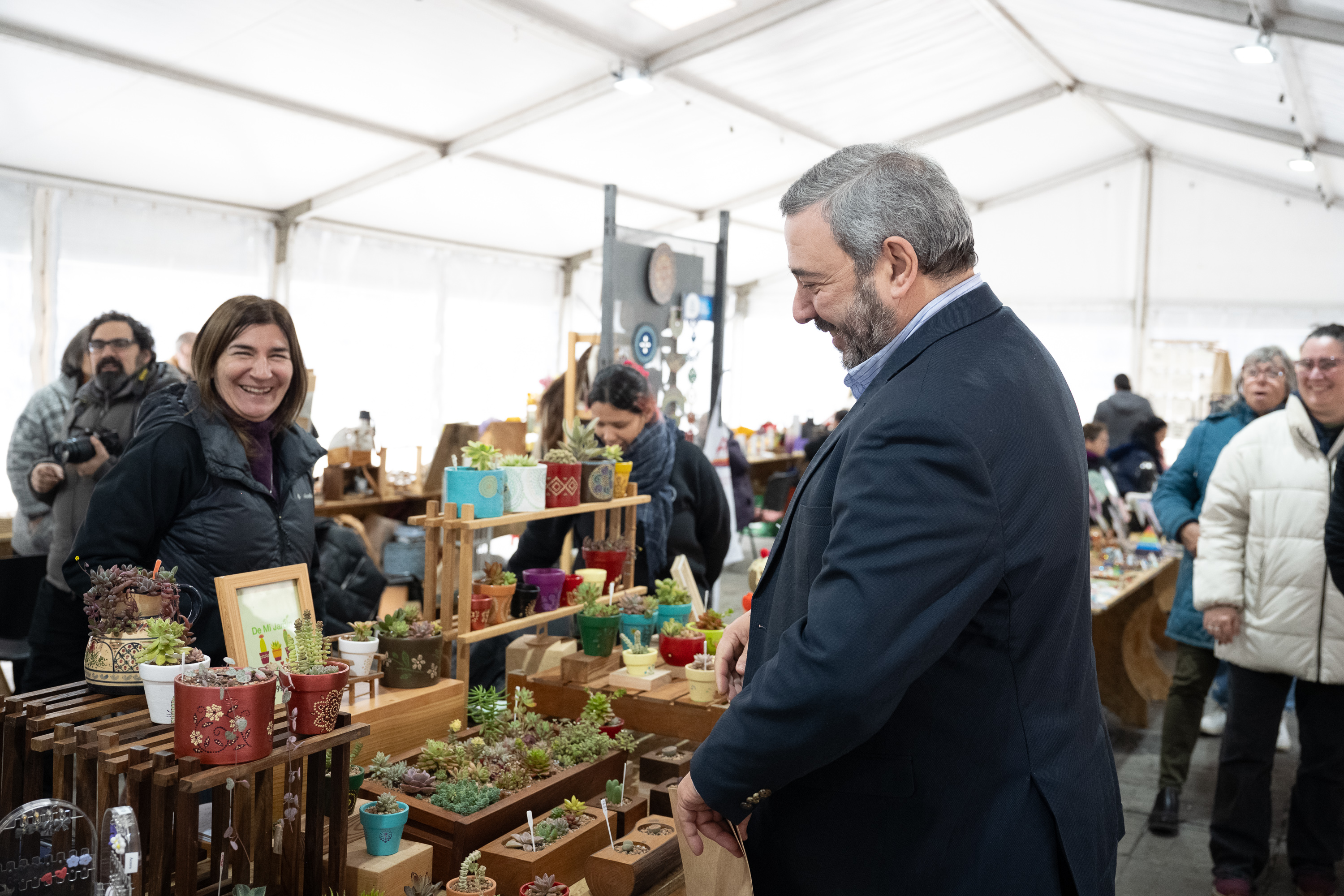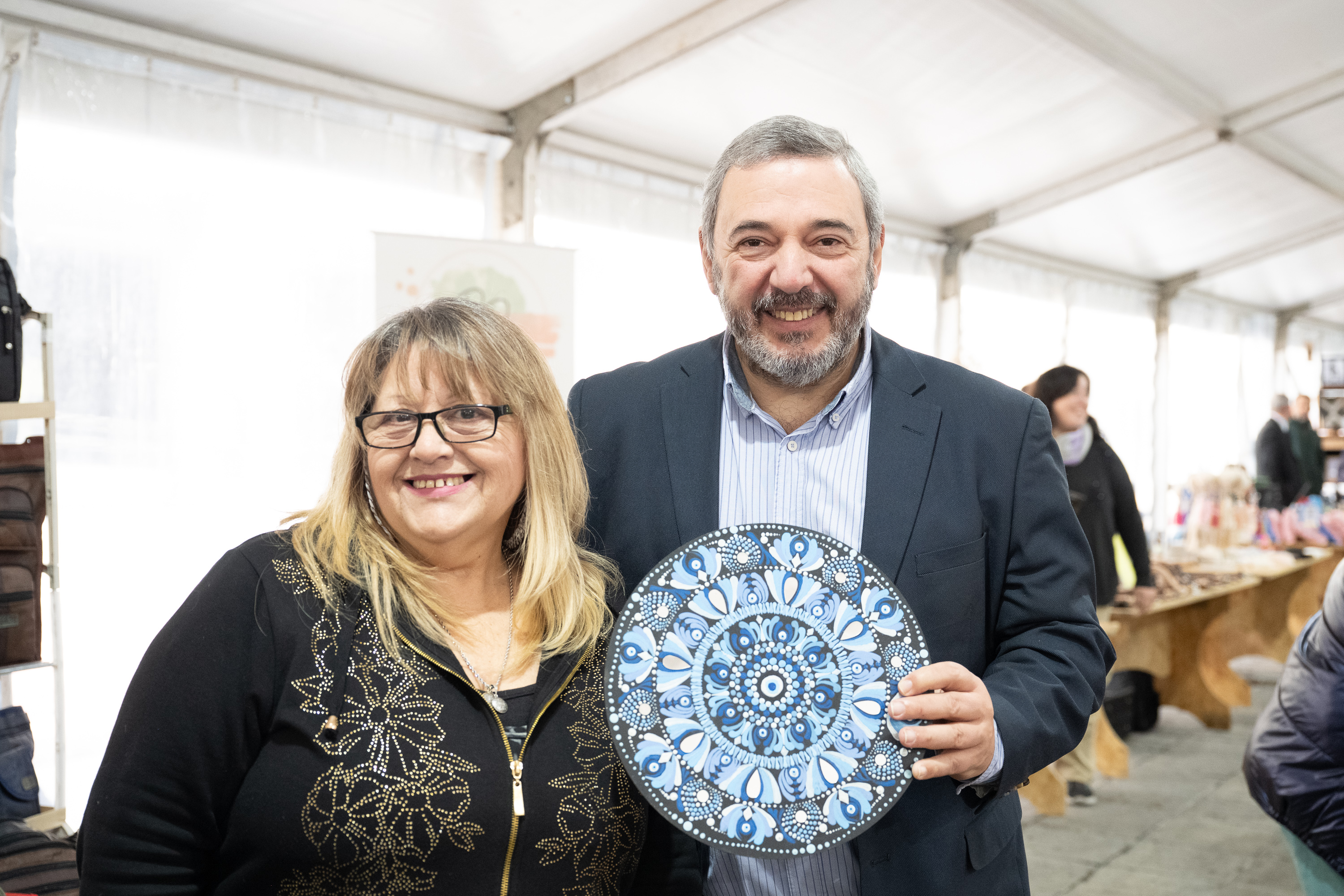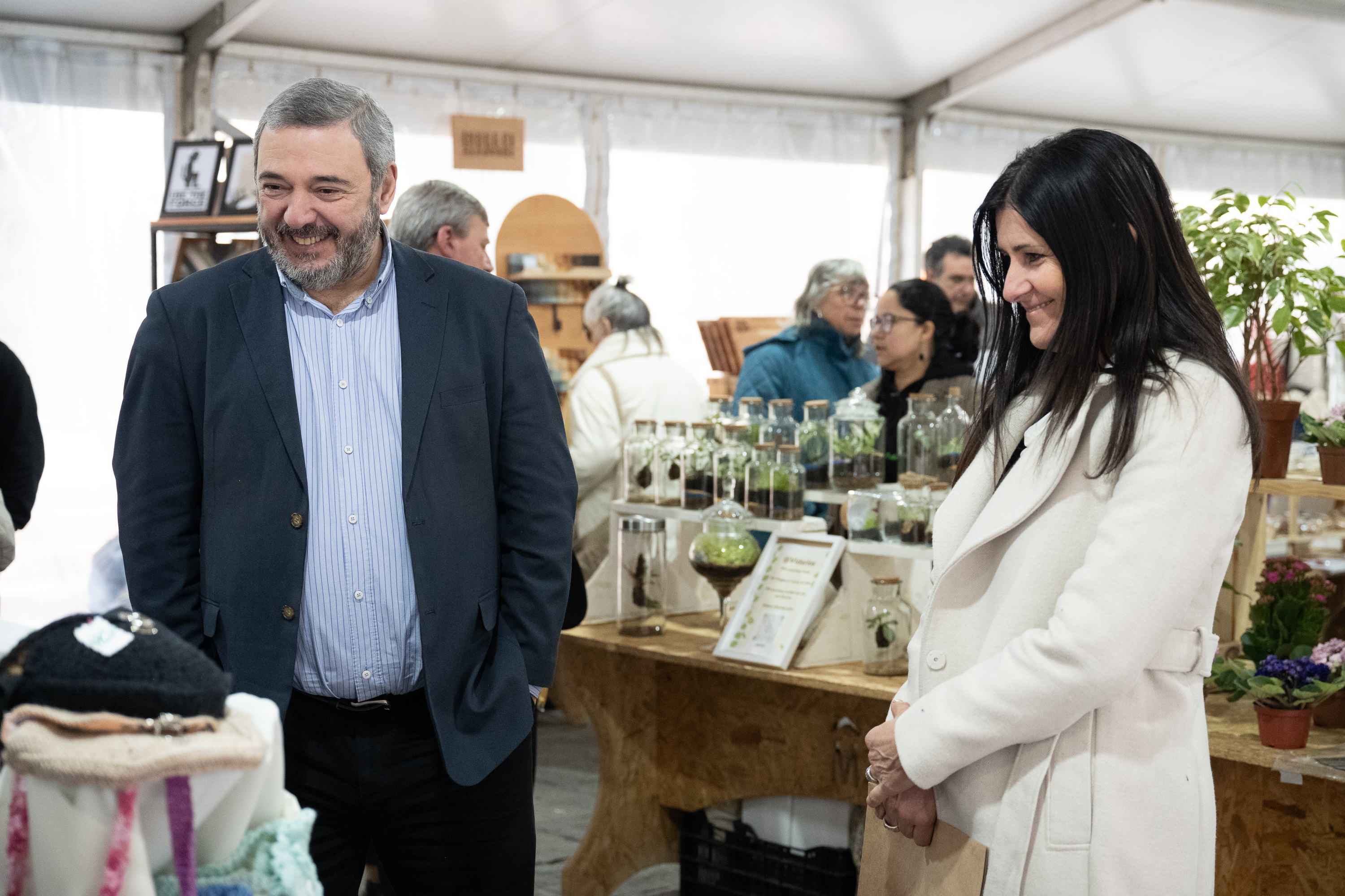 Intendente Mario Bergara, junto a la secretaria general Viviana Repetto, recorren la Feria de Emprendimientos Mypes