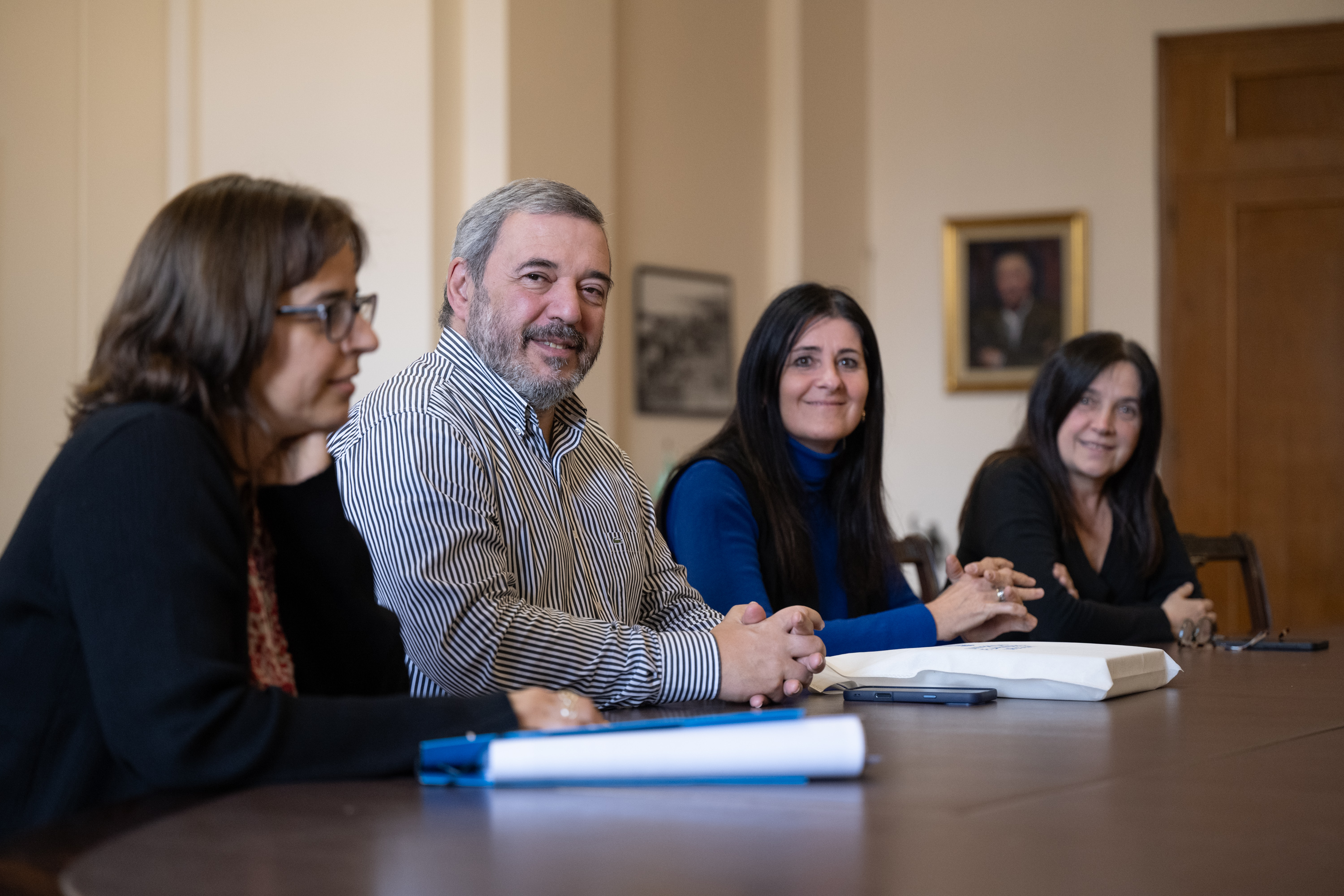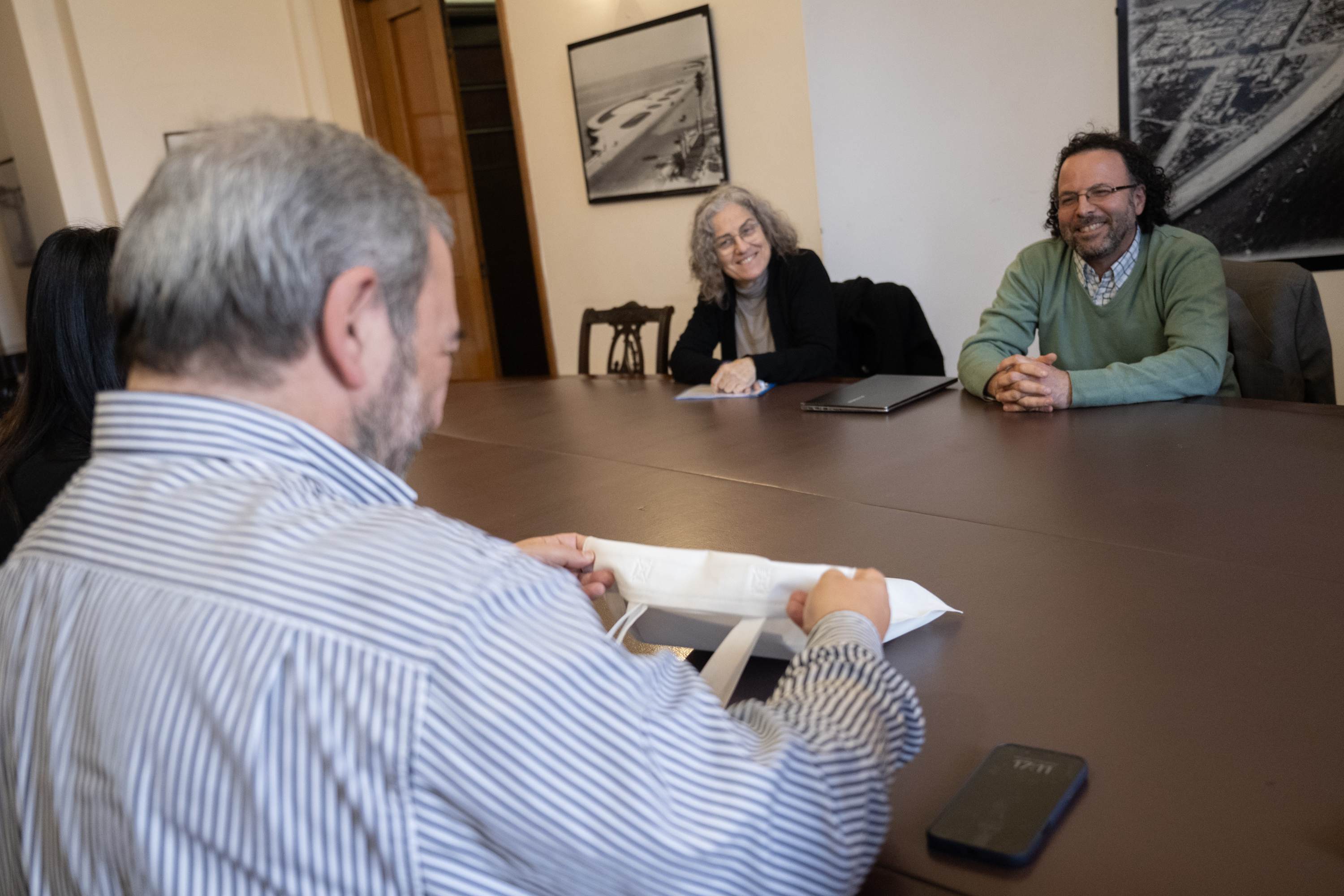 Intendente de Montevideo Mario Bergara y la secretaria general Viviana Repetto, durante el encuentro con el rector de la Universidad de la República, Héctor Cancela