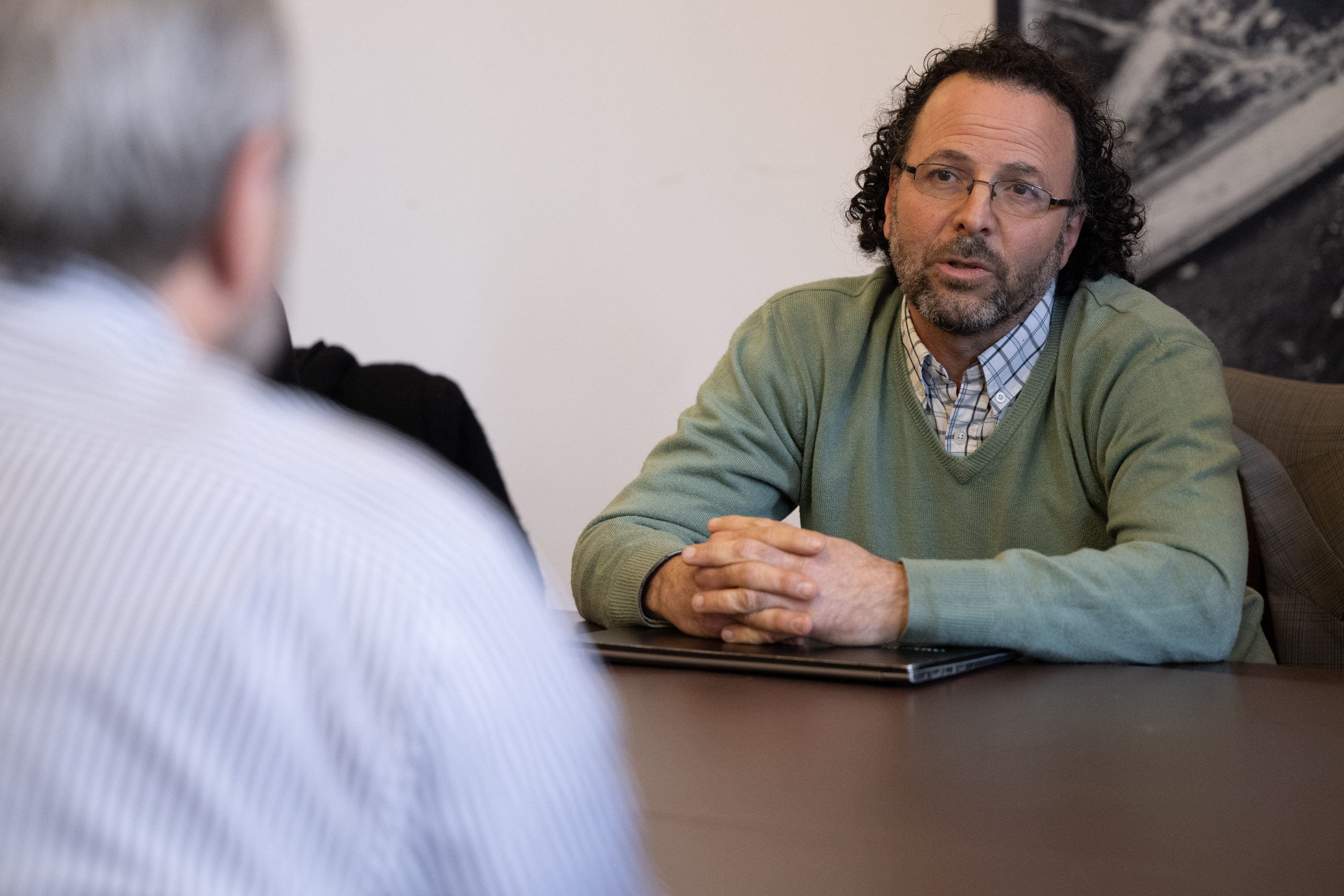 Rector de la Universidad de la República, Héctor Cancela, durante su encuentro con el intendente de Montevideo, Mario Bergara
