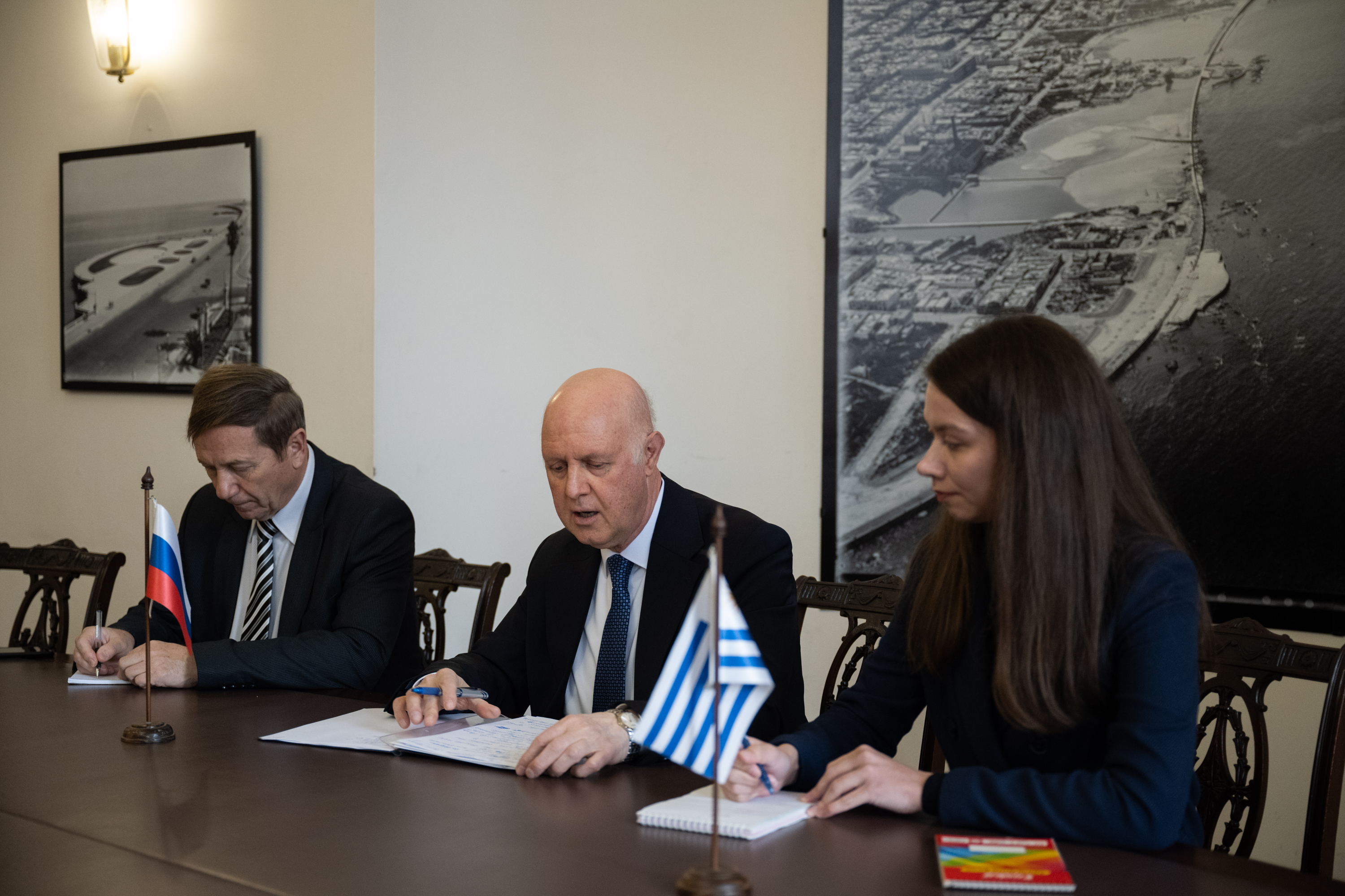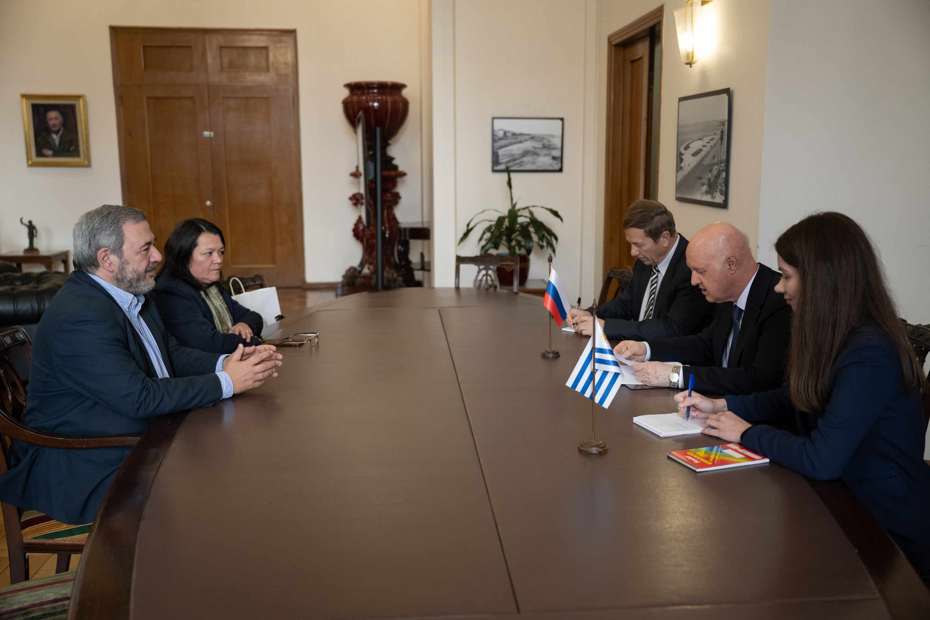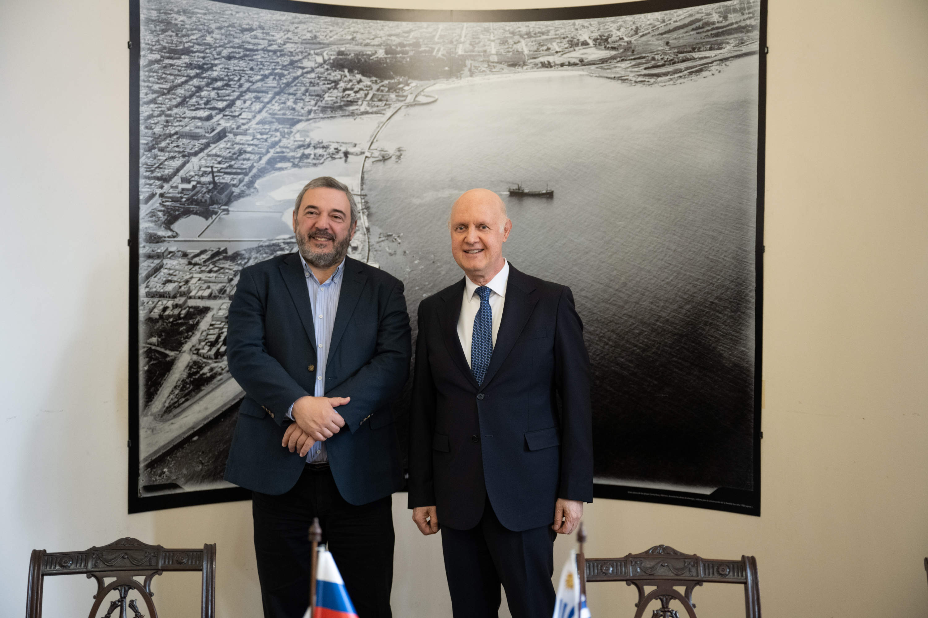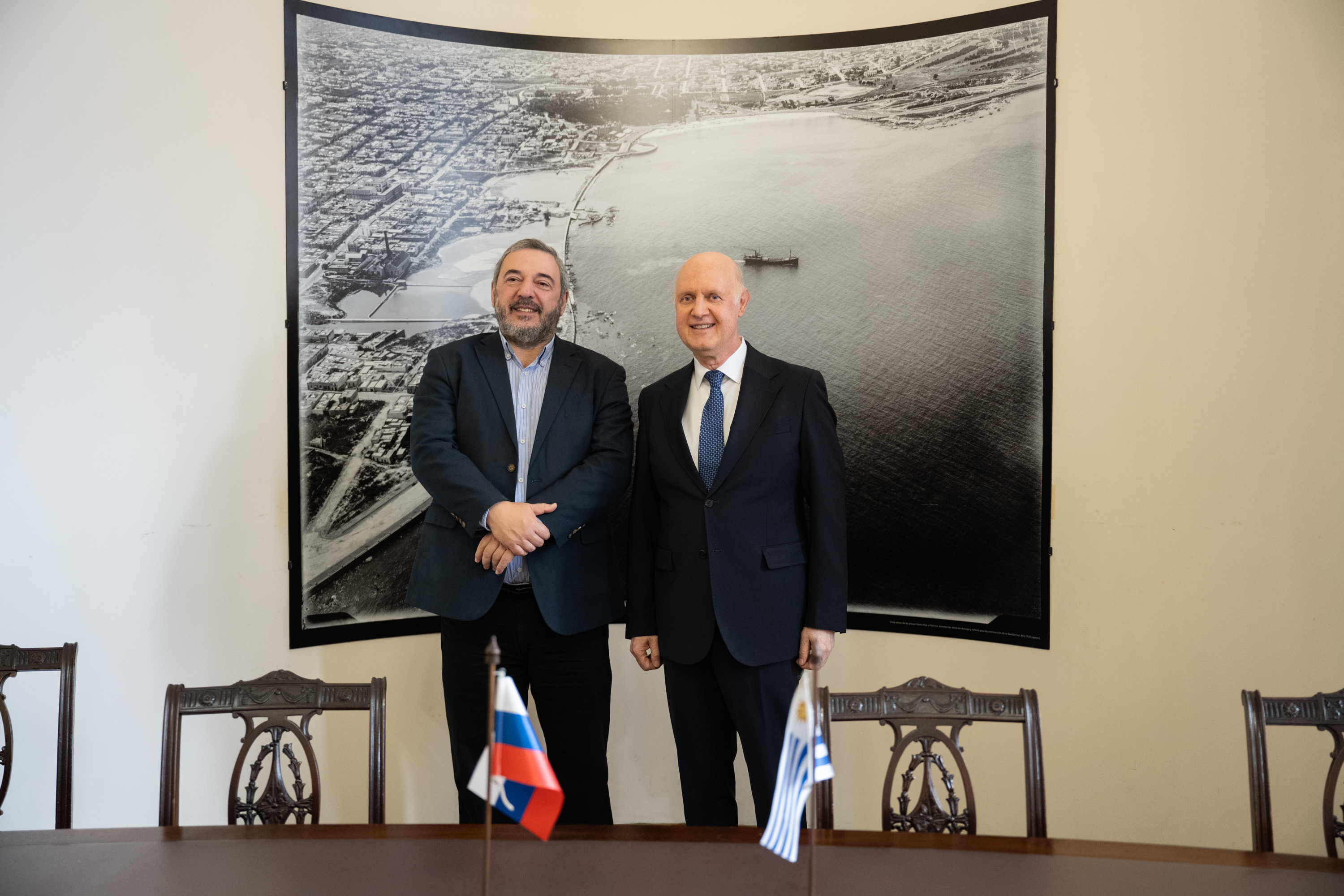 Embajador de Rusia, Alexey Isakov durante su encuentro con el intendente, Mario Bergara