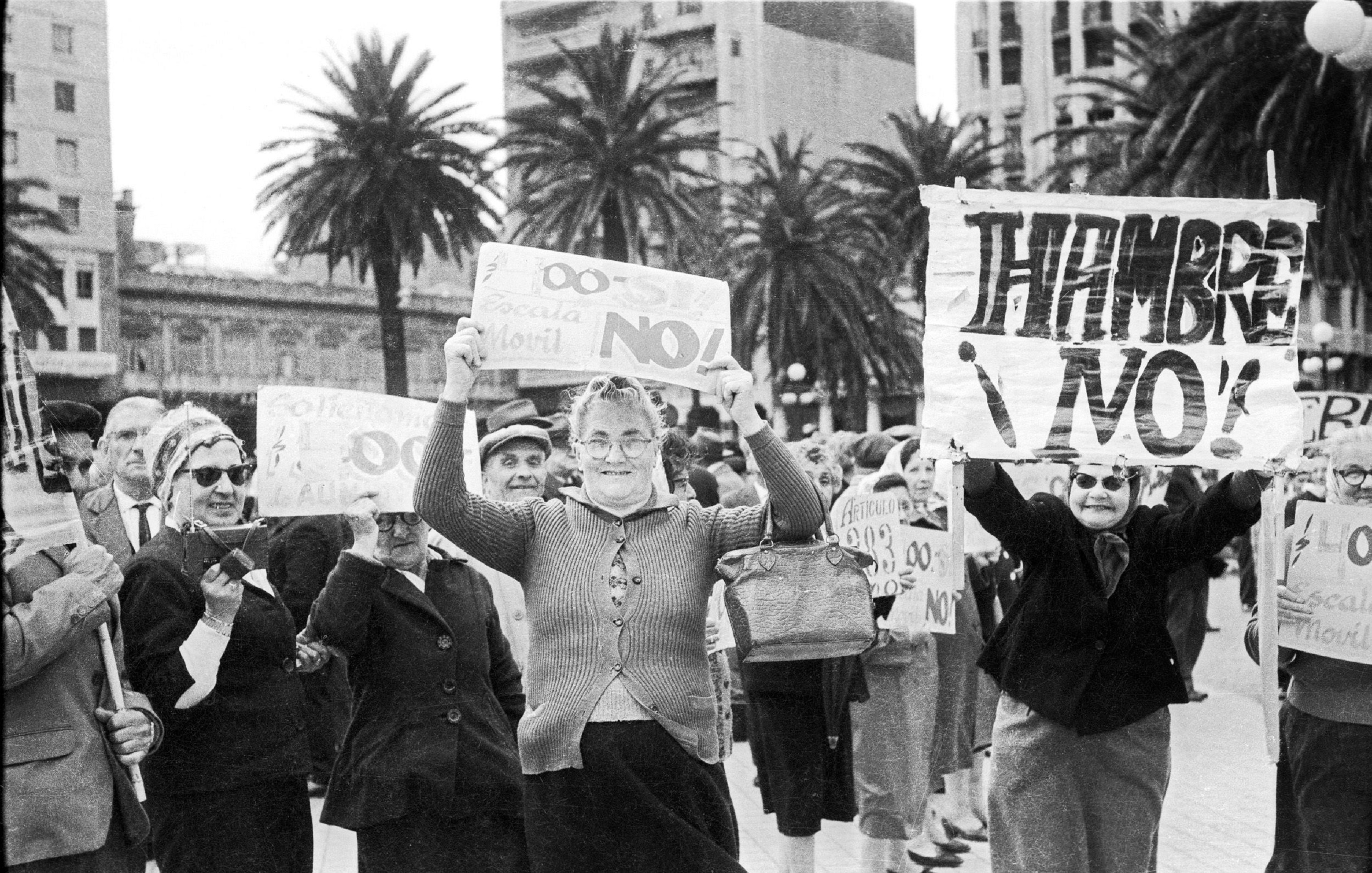 Movilización en reclamo de aumento de las jubilaciones. Plaza Independencia, 1964.