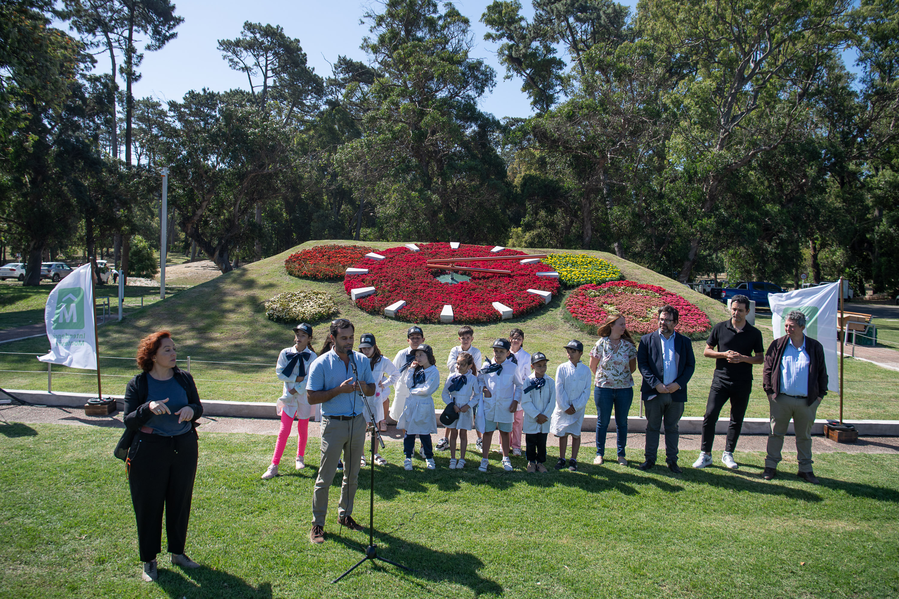 Inauguración del reloj de flores del parque Rivera