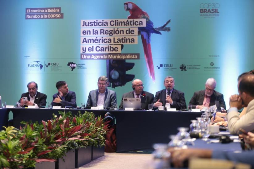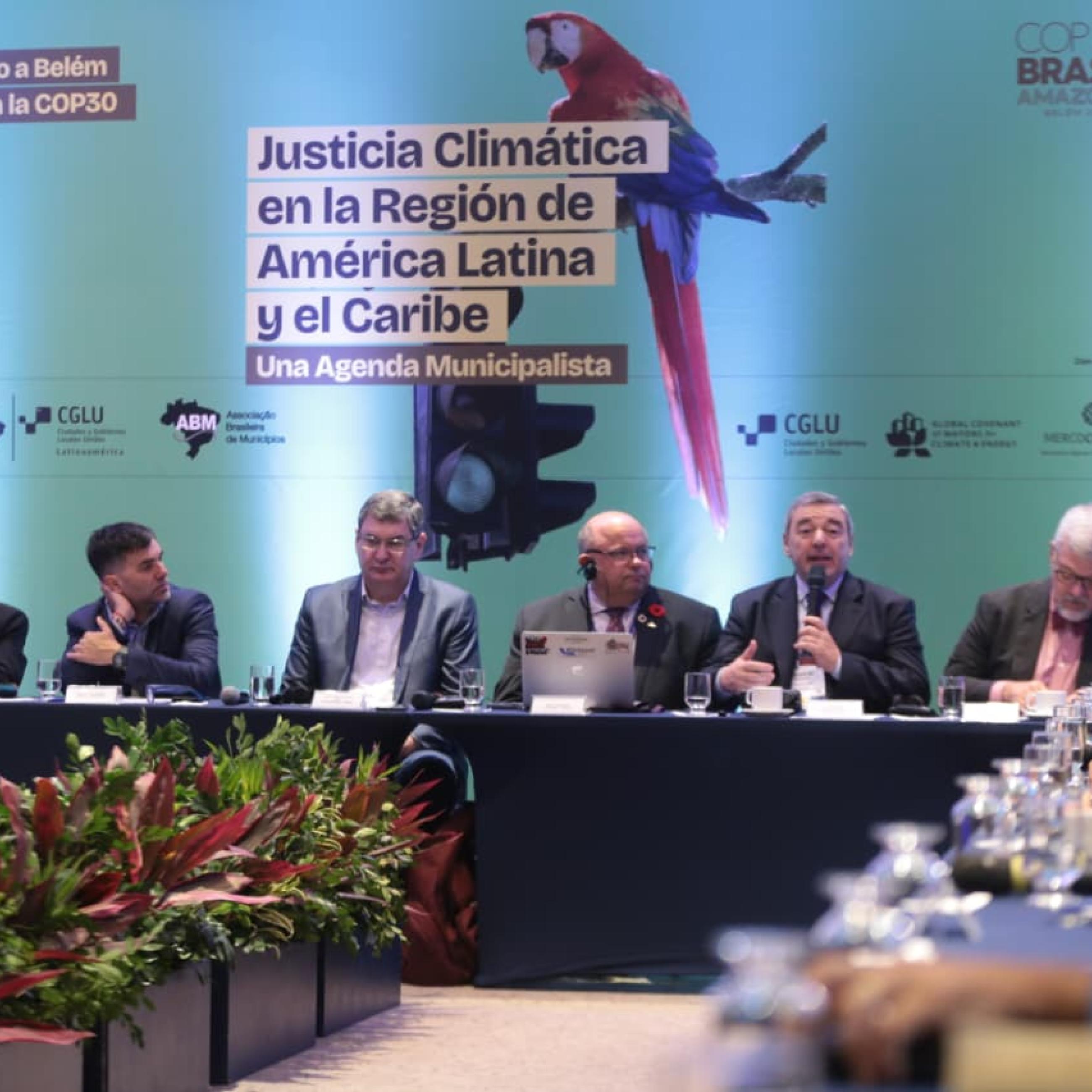 Esta mesa se realizó en el marco del Foro de Líderes Locales previo a la COP30, con el objetivo de que gobiernos locales de la región intercambien sobre la visión del liderazgo local en materia de justicia climática. También se buscó fortalecer alianzas regionales y trabajar en una agenda municipalista vinculada al cambio climático.