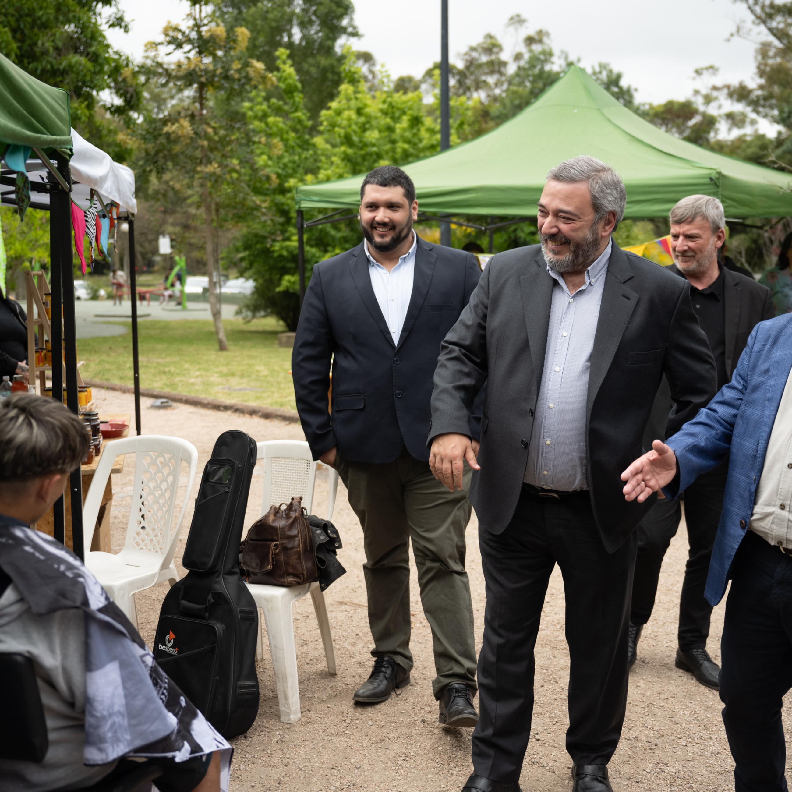 El intendente de Montevideo, Mario Bergara, participó en el cierre anual de actividades del Centro de Desarrollo Local Carrasco junto al director del Departamento de Desarrollo Económico, Camilo Benítez, el director de la Gerencia de Economía Local, Nicolás Echevarría; y el director del Cedel Carrasco, Amadeo Pereira, entre otras autoridades del gobierno departamental.