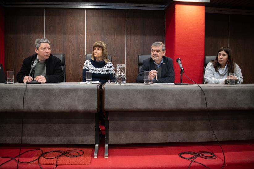 La mesa de apertura estuvo integrada por la secretaria general de la IM, Ing. Olga Otegui; el decano de la FCEA, Cr. Jorge Xavier; la directora de Ciencias de la Administración, Mag. Inés Vázquez, y el director del Departamento de Desarrollo Económico de la IM, Gustavo Cabrera. También estuvo presente la directora de la Asesoría para la Igualdad de Género, Solana Quesada.