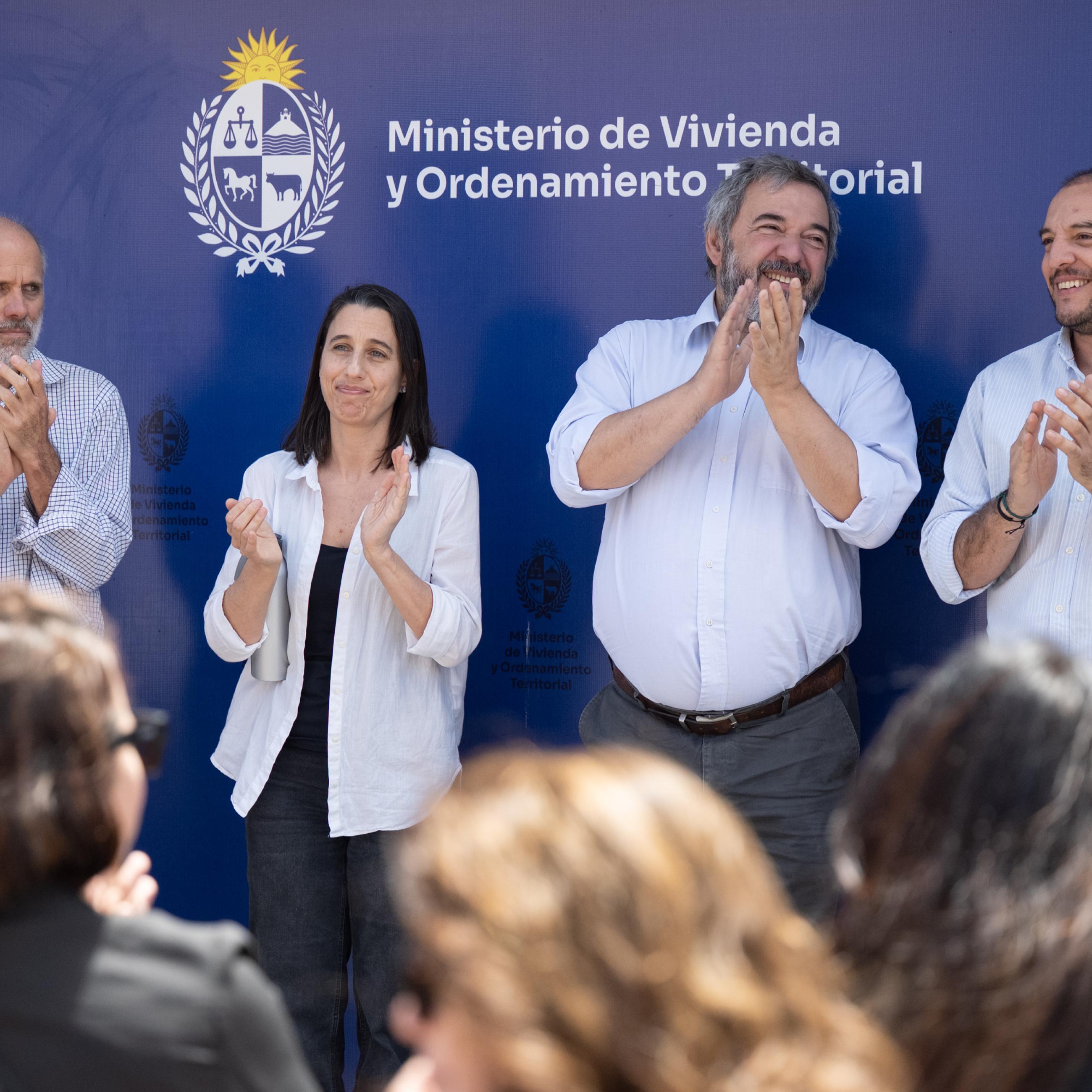 En la inauguración participó el intendente de Montevideo, Mario Bergara; el subsecretario del Ministerio de Vivienda y Ordenamiento Territorial, Christián Di Candia; el director Nacional de Vivienda, Milton Machado; la directora de la División Tierras y Hábitat, Alicia Rubini, junto a las familias relocalizadas.